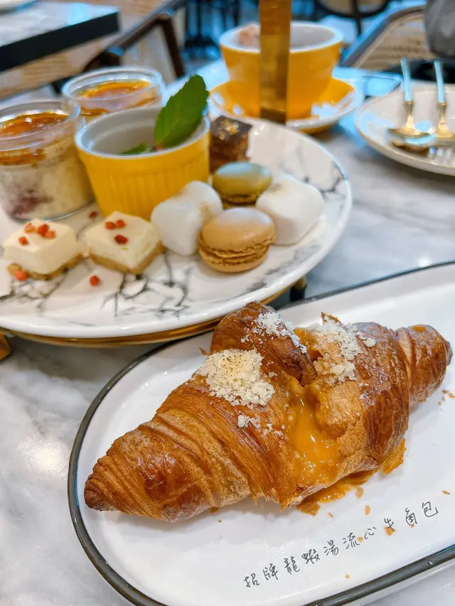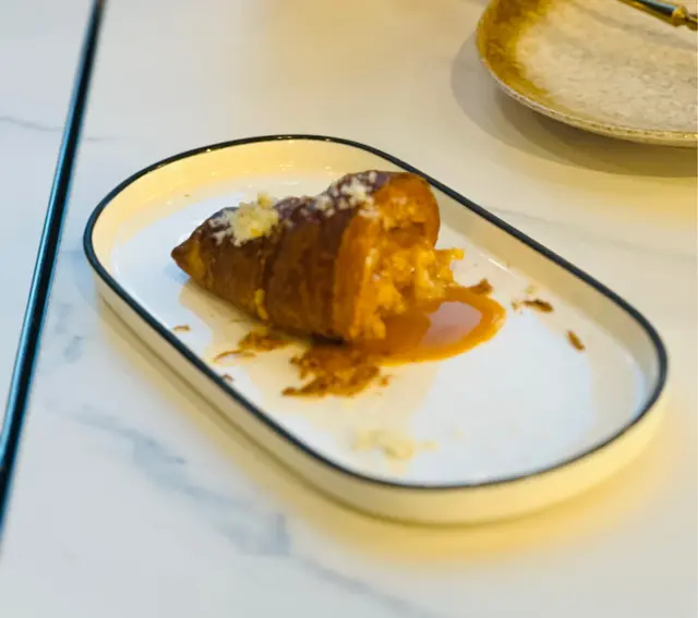 呢間餐廳係唔同平台都有各式各樣既套票或折扣,本身見到週末openrice 訂座都有75折就去試下,去到原來要每位都至少單點一杯飲品先可以享受個優惠,咁就食返佢本身既weekend brunch,$198 / 3 course。餐廳位置不大,因為都係靠窗,全部採光大玻璃,所以即使落咗窗簾室內溫度都比較高,唔太感受到冷氣。 留心牛角包喺餐廳招牌,所以叫咗兩個試吓。🍴蟹膏流心牛角包(+$28)食到尾段有強烈酸味,但當時並冇同餐廳職員提出,事後都有肚痛症狀。🍴招牌龍蝦湯流心牛角包湯底都有濃烈龍蝦味道,味道不錯,gimmick 係有,但乾身嘅牛角包中間包住湯難免會有濕立立感覺,冇左牛角包中間應有質感。牛角包外皮似一大片酥皮多過一層層嘅鬆化牛角包。意大利飯做到中間仲有少少硬身,蕃茄味濃。但聲稱慢煮嘅豬腩肉比較乾韌,肥肉比例上亦較多。個魚本身食落唔重調味,靠側邊嘅忌廉同南瓜汁搭救,非常清淡。雪糕反而幾香雲呢拿味,口感滑燉蛋中間好似水汪汪未成型尖沙咀$198 / 3course 好似唔貴,但質素平平,食過招牌牛角包,試過就冇下次。*餐廳提供BB凳,親子友善。…查看更多