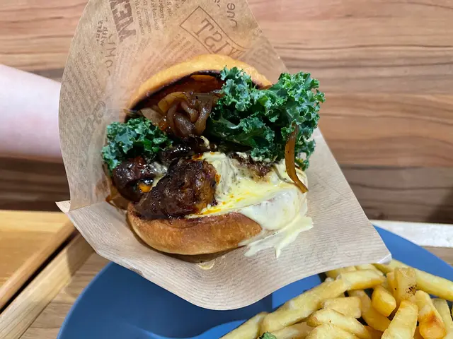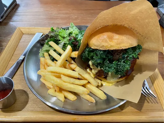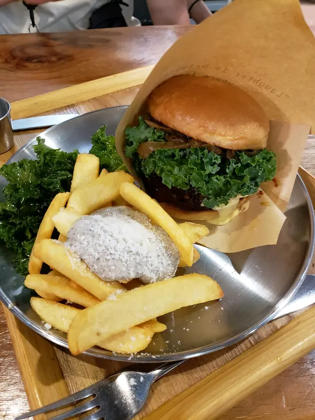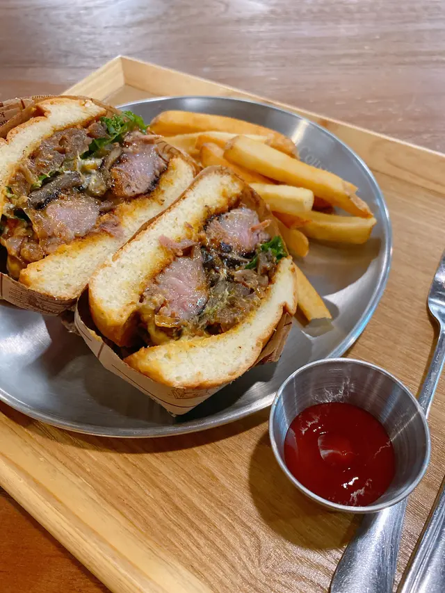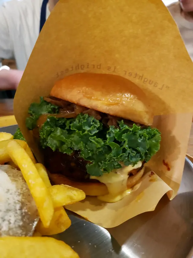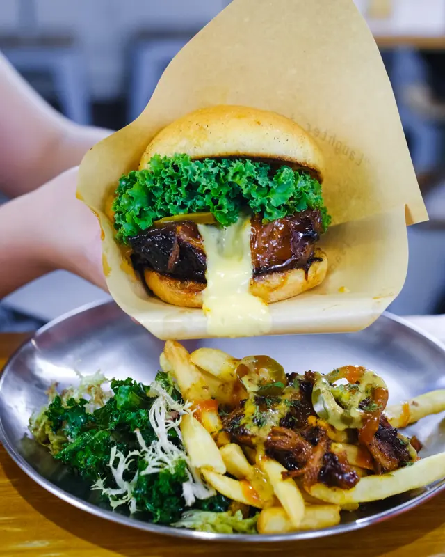 🏷️The Cool Cousins Cafe & Noodle Bar🍔📍觀塘開源道60號駱駝漆大廈第三座11樓J室(港鐵觀塘站B2出口,步行約3分鐘)📞3425 4611由上年見到YouTuber介紹佢個雪糕炸雞burger ,就一直心思思想一試究竟😋終於有時間過嚟trytry,即刻同男友一人一個填填肚仔🤎小店用Qr code落單,每個漢堡即叫即整,等大約15mins🤎熱辣辣🌞一坐低就見到呢個我心心念念既雪糕炸雞burger ($129)🌝一嚟到我即刻哇…賣相超級吸引😳😳伴碟就揀左同樣被推薦既花生楓糖蕃薯條🍠(跟餐+$23)超級邪惡!伴碟沙律不過不失🥹Burger 唔好諗住可以一啖咬曬,因為厚到根本冇可能🤣我先咬左啖雞,水牛城醬好突出,加埋雪糕既甜,岩岩好可以中和一下,但略嫌會令到成個漢堡濕得滯,而且冰火效果唔出,但整體連埋一齊食,食用效果好特別🌝 推薦指數3️⃣/5️⃣相反蕃薯條連楓糖花生醬幾特別,如果脆啲就更加理想,食下食都食晒成碟🤣推薦指數3️⃣.5️⃣/5️⃣呢個「招牌 72 小時安格斯牛小排漢堡」($129)果然可以叫做招牌🤣因為一咬落去肉汁即刻咇曬出嚟,同男朋友即刻搶食,個人食落覺得有啲似BBQ醬豬肋骨,但牛肉嘅軟糯配搭漢堡更勝一籌🌝另外包嘅羽衣甘藍同墨西哥辣椒更加令到成個漢堡昇華,俾我再揀下次都係揀呢一個😋推薦指數4️⃣/5️⃣另外半碟揀咗芝士黑松露薯條(跟餐+$16)芝士松露味唔出,薯條偏腍🥹推薦指數2️⃣/5️⃣…查看更多