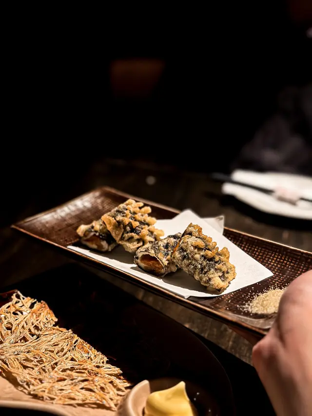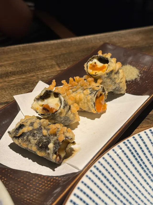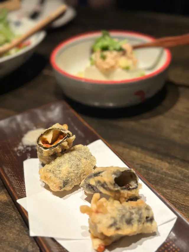 今晚約埋三五知己嚟到諾士佛台食嘢😋 一早bookmarked咗依間高質嘅居酒屋好耐,餐廳設計充滿日式風情,好似一秒就去到日本咁🇯🇵 如果多人嘅話,仲可以坐包廂👀👀🍶【神龍】聽店員介紹嗌咗依枝清酒🍶 酒味帶有甘甜果香💕 適合配搭所有佳餚👍🏻【海鮮沙律】醬汁味道清新,魚生豐富又夠鮮甜,開胃一流。⭐️【揚海苔芝士海膽卷】驚喜之作👀 炸得香脆又唔油膩,海膽同芝士夾埋好creamy,海苔味又夠突出,真係一啖接一啖🤤🤤⭐️【白身魚薄切】擺盤精緻、刺身切得好薄,盡顯師傅刀工‼️【東洋卷】Pancake外皮係即叫即整,餡料豐富,誠意滿滿💯【串燒】特別推薦⭐️【豚肉車厘茄串】⭐️豚肉燒得啱啱好,唔乾!車厘茄爆汁,酸酸甜甜加埋好夾👍🏻 ⭐️【牛舌】⭐️ 切得厚薄適中,燒得香口,咬落有彈性,配埋檸檬汁更加perfect‼️⭐️【汁燒原隻日本魷魚】魷魚爽口,燒得好香,汁甜甜地又有少少焦香‼️【香蔥吞拿魚蓉卷】吞拿魚蓉香口、香蔥提味,壽司飯唔會太硬,整體好食【和牛炒飯】炒得夠鑊氣,飯粒分明,充滿油香,但食到尾都唔會膩😋…查看更多