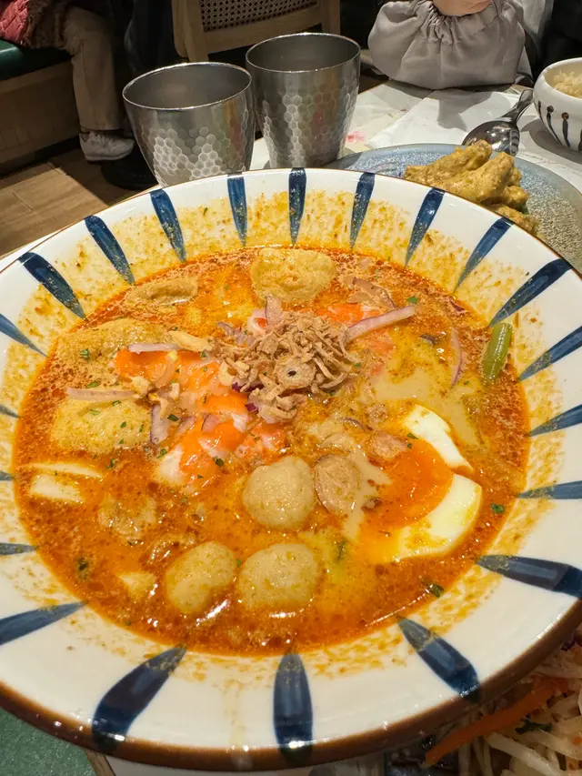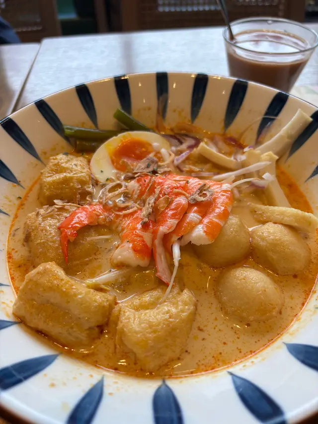 餐廳:咖吔地點:北角匯菜式:新加坡菜餐牌:午市套餐選擇好多,有好多款飯麵,配冷熱飲品,可以加錢升級飲品,設有加一服務費。新加坡喇沙 $88 另加一新加坡喇沙摻摻即係黃色粗麵加幼身粉絲,前者有咬口又滑溜而後者幼滑吸汁,加埋係好正嘅口感。個湯又香又滑,梛汁又夠,都頗辣。配有連殼蝦兩邊,彈牙魚蛋三粒,同唔少魚蛋條,其他配料有半隻熟蛋,爽口通菜,吸汁豆卜4件,紫洋蔥絲同爽口芽菜,口感豐富。另配青桔一件同參峇醬。海南雞飯 $88 另加一海南雞大概有十幾件,半胸半脾仲有半隻雞翼,雞肉都算嫩,伴有3片青瓜,跟有三色醬汁。雞油飯大大碗,熱辣辣,好香。仲有一碗鹹香冬瓜雞湯。參峇醬燒豬頸肉 $42 另加一參峇醬燒豬頸肉一客7片,燒得口感香脆,伴有車厘茄半粒,洋葱絲同青瓜幾片,仲有參峇醬更惹味。街頭雞肉串燒 $26 另加一街頭雞肉串燒一客兩串,熱辣辣上枱,燒得皮脆啖啖肉,撈埋個參峇醬微微辣,好惹味。伴有車厘茄半粒,洋葱絲同青瓜幾片解膩。馬來芒果汁配芒果雪糕 加$12 另加一 馬來芒果汁配芒果雪糕有濃厚芒果汁面頭加上大大球芒果雪糕,芒果汁味道唔假,都唔會太甜。呢個價錢好抵。海鹽雪糕椰汁珍多冰 加$12 另加一海鹽雪糕椰汁珍多冰就係微鹹藍色海鹽雪糕伴香甜椰汁,直頭係一杯甜品。仲有綠色珍多冰加添口感。今餐食物質素幾好。呢度上菜快捷,座位舒適,平日下午茶時段都好滿座。…查看更多