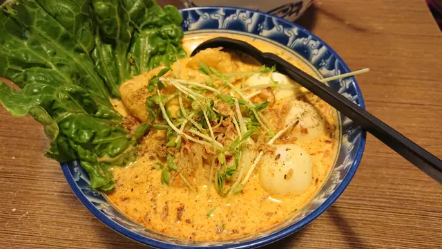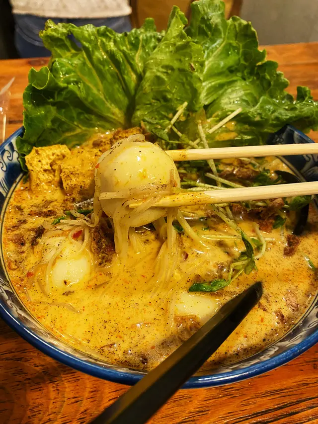 🕰️Dining Hour: 13:15-14:00 👥Pax: 2This small shop locates in an alley, which took me some time to search. When we arrived, there was a long queue already. The shop was very packed and you shall expect sharing tables at such busy hours. There were less than 10 lunch sets to choose, which means they are really focused on those several dishes. The place is good for casual quick lunches.a. Singaporean Fish Ball Laksa ($66) [新加坡深海魚蛋喇沙]Lunch set: include homemade sugarfree mangosteen tea (羅漢果茶)It doesn't look extraordinary in the photo, but it is in fact very tasty.