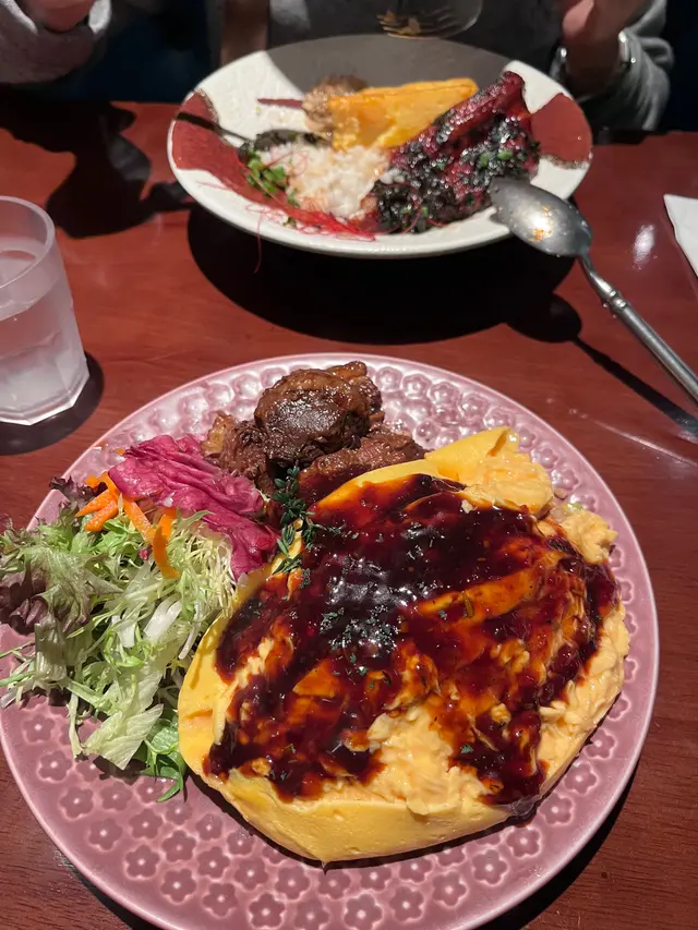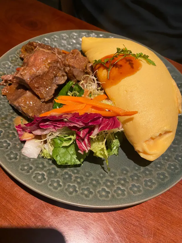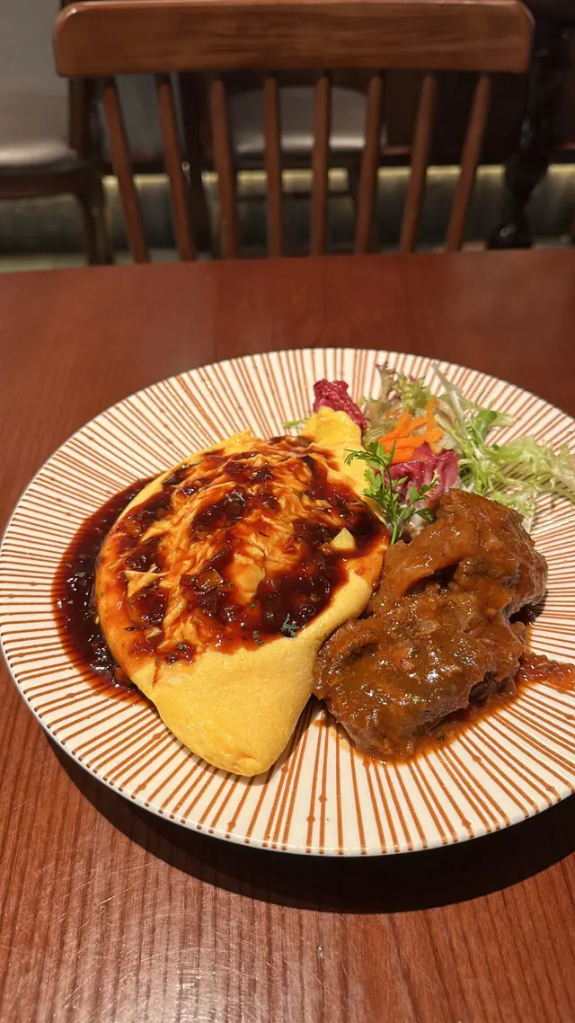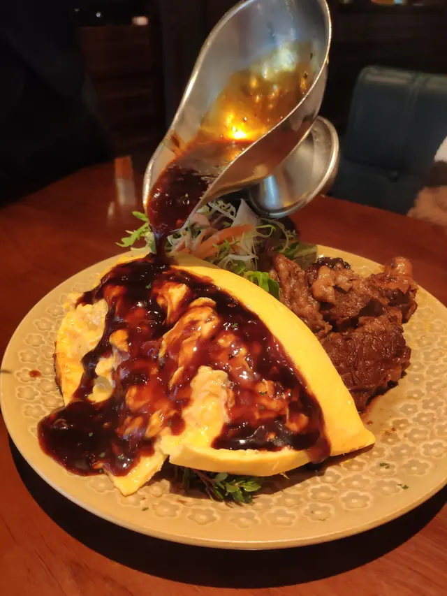 ✅裝修好複古好靚 ✅好適合打卡 店員會比你影完蛋包飯先切✅甜品性價比唔錯 (跟餐加$32就有)✴️都多人排隊 ✴️坦白講都係打卡為主 不要對食物太高期望⭕️日式紅酒燉牛肉蛋包飯 ⭐️⭐️⭐️個蛋還可以 切開有流心都係基本啦 味道還好 蛋味唔算好香 入面嘅飯係炒飯而非白飯 值得欣賞 但唔點汁食都係冇咩味嘅燉牛肉都腍嘅 但咁多蛋同肉 而紅酒汁嘅味道唔夠惹味、唔夠有層次嘅時候就好幾易滯⭕️伯爵茶戚風蛋糕 ⭐️⭐️⭐️⭐️⭐️呢個蛋糕好有驚喜 首先個海綿蛋糕底好濕潤 伯爵茶味夠香濃而唔假 面頭嘅cream酸酸地而且好香芝士嘅奶味 蛋糕夠濕潤嘅時候就可以同cream融合得好好 入口好順滑 ⭕️日式布甸 ⭐️⭐️唔難食不過冇蛋香 冇焦糖香 口感亦都唔滑 同面頭嘅cream同是士多啤梨味道係唔夾的都幾甜下 不過布甸頗甜都係可接受…查看更多