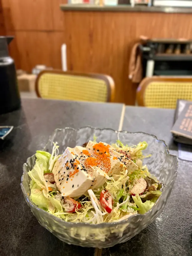 最近去了荃灣荃新天地一樓的古今二享用晚餐。古今二是一間日式餐廳,主打創意卷物,飽覽商場中庭露天廣場,供應沙律、前菜小食、飯麵、串燒、鍋物、燒物、天婦羅及炸物、壽司、刺身、卷物等等。餐廳座位闊落,特大廚窗,透光度高,用餐舒適。古今日式煎餃$56外皮煎得金黃酥脆,豬肉內餡鮮嫩多汁。日式麻醬豆腐沙律$48豆腐滑嫩細膩,搭配濃郁芝麻醬,撈埋清爽的沙律菜,味道清新開胃。蜘蛛 $88卷物飯粒握得緊密,軟硬適中,夾起來不易散開,緊緊捲著青瓜、蟹柳、牛油果和炸軟殼蟹的豐滿餡料,一口就有多重層次。壽司薄餅$98炸飯餅變成薄餅餅底,飯餅外層金黃酥脆,內裡米飯香軟彈牙,面層的辣味三文魚和千島海鮮醬和炸飯餅底完美融合,啖啖卜卜脆,口感豐富惹味。蒜香牛油粟米$38香甜粟米配上香氣四溢的蒜香牛油,入口香滑帶有淡淡蒜香,食慾大開。黑豚豬頸肉串燒$28黑豚豬頸肉烤得外焦內嫩,肉質鮮美多汁,煙燻香氣撲鼻,簡單調味凸顯豬肉本身的甜美與豐富油脂感。鹽燒雞中翼串$28用上粗鹽燒過的雞中翼,有一種焦香,雞肉充滿肉汁,非常嫩滑。…查看更多
