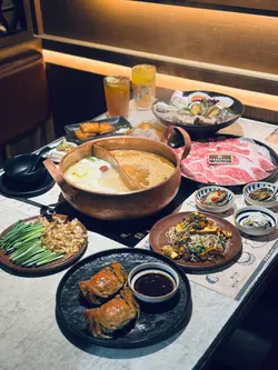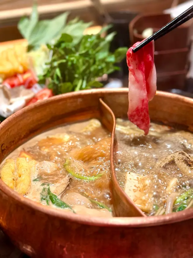 🙋🏻♂️餓底探員去咗旺角調查呢間台式火鍋店,餐廳走木系風格,環境闊落,由台灣師傅主理,主打台灣特色湯鍋及地道食材,供應多款吃到飽套餐,凡惠顧日本黑毛和牛A4+ 套餐,即送江蘇太湖大閘蟹,期間限定至2/12,要食就快喇🥩日本黑毛和牛A4+吃到飽 $458🙋🏻♂️表示套餐可以任食A4+和牛,伊比利亞黑毛豬梅肉,多款口味鮑魚,每位仲贈送海鮮拼盤,澳洲M9和牛牛丸同江蘇太湖大閘蟹一隻🍽️懷舊系列🦐蝦蝦霸霸脆多士|🍐日本和牛橘梨伴豆腐👵🏻阿嬤豆乾魚蓉麵🙋🏻♂️表示將多款懷舊小食經典重現,帶來復刻體驗🦐蝦多士口感香脆,蝦肉鮮甜彈牙🍐香滑豆腐配上香嫩和牛同清甜橘梨,層次豐富👵🏻選用本地老字號永樂粉麵廠嘅素魚茸麵,麵質爽彈,配上鹹香豆乾同秘製蔥油,香氣撲鼻🍲鴛鴦鍋 +$50🦑聰明魷魚沙茶鍋|👵🏻阿嬤養生濃湯鍋🙋🏻♂️表示兩款湯鍋一濃一鮮,令食材更入味更提鮮🦑沙茶醬配上芝麻醬為基底,味道超濃郁,配上魷魚同蜆肉增添鮮味,仲加入脂香嘅五花肉,木魚花同韭菜,令湯鍋層次感更豐富👵🏻以大骨原湯作基底,配以大量新鮮蔬菜,加入多種養生藥膳烹煮成,湯頭集鮮,濃,香,味道清甜,充滿回甘氣息🦀大閘蟹🙋🏻♂️表示套餐每位送江蘇太湖大閘蟹一隻,蟹膏非常澎湃,呈金黃色,味道甘甜鮮味🦐海鮮拼盤🙋🏻♂️表示海鮮拼盤有鮑魚,扇貝,蠔同魷魚多款時令海鮮,鮑魚爽口煙韌,扇貝鮮甜,蠔肉肥美,鮮魚彈牙🍡澳洲M9和牛牛丸🙋🏻♂️表示和牛牛丸口感爽彈,肉汁豐沛,味道鮮香濃郁🥩日本黑毛和牛A4+🙋🏻♂️表示選用日本產黑毛和牛,級別達A4+,油花非常豐富,肉質香軟入口即溶,充滿香濃牛味🦪鮑魚⚪️美乃滋鮑魚酥|🟠柚子燒汁鮑魚|🔴古法醉鮑魚🙋🏻♂️表示鮑魚有3款口味,各具特色⚪️口感酥脆,配上香滑美乃滋🟠口感酥脆,食落有清甜柚子味🔴口感香軟,充滿醇厚酒香🥭芒檸蜜西米爽🍋港式檸檬茶18+ $58🙋🏻♂️表示西米爽以檸蜜同芒果調配成,味道香甜又有粒粒西米,口感豐富,檸茶味道甘香夠地道,加入伏特加增添濃烈辛香,配搭特別📈吃貨指數😋好味度 9/10🔙返啅度 9/10…查看更多