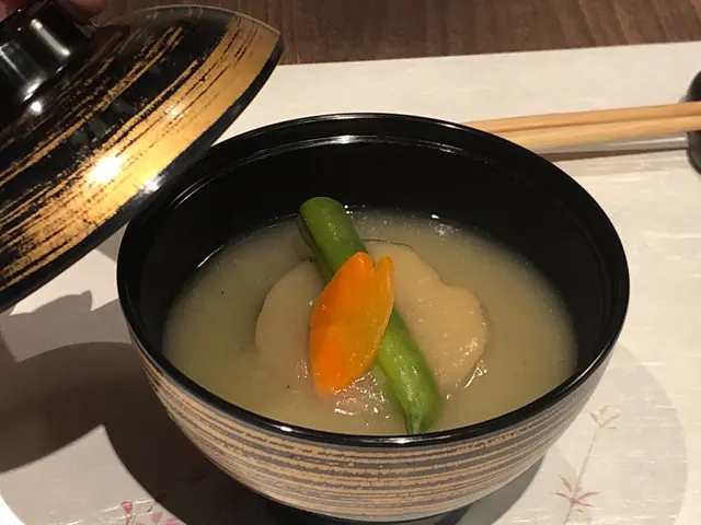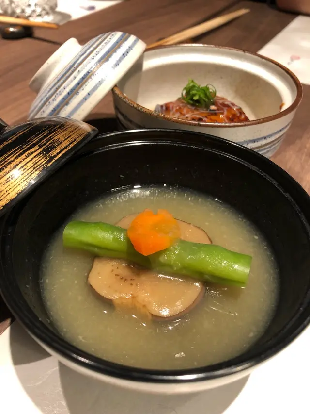 母親節食飯, 一星期前book了晚餐4人枱 (但當天發現walk-in 也不用等便是了~). 大家都點了$388 的套餐. 墊枱的和紙很美! (≧∀≦)ゞ前菜8款 待應上菜時給我們逐一介紹, 由左至右是 : 魚子冷蒸蛋羹->胡麻豆腐->茄子天婦羅 (上)->蜜煮楊梅 (左)->帆立日本茶天婦羅(右)->果醬魷魚->胡椒醋雞肉->鮪魚壽司 每款都好吃, 不乏未吃過的菜色如胡麻豆腐 (待應表示它其實不是豆腐~).旬野菜椀白蘿蔔等蔬菜煮成的湯, 香濃好喝~ 中間的是煮軟和吸滿湯汁的茄子.炙燒和牛壽司蟹肉羹鰻出汁蛋卷鰻魚肥美彈牙, 蟹肉羹鮮甜, 很美味~生麩田樂~忘了拍照 (〒︿〒) 只好在官方facebook找來圖片~ 這是開張時期贈送的, 煙韌的生麩配上咸咸甜甜的味噌~蔵味噌漬 / 和牛4 人的主菜, 我們各點了不同的, 包括蔵味噌漬-銀鰤鯧蔵味噌漬-銀鮭魚 (+$28)蔵味噌漬-銀鱈魚 (+$88)鐡板和牛 (+$128)配有白飯, 味噌湯, 和漬物.甜品&抹茶今天的甜品是黃豆粉蕨餅整體消費人均$500, 每道菜逐一上枱, 整頓飯用餐時間2小時, 是不錯的體驗 (๑´ڡ`๑) …查看更多