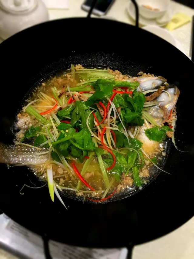 難得約了大伙兒一同聚餐,今次輪到小弟選擇聚會餐廳,作為一個潮州人,為了尋找兒時回憶,便提議食潮州菜,不料大伙兒竟十分雀躍,於是便相約於元朗形點II開張不久的百樂潮州酒樓。在等齊人開飯前便先開瓶白酒,配滷水豆乾餐前小食,因為會食凍蟹,所以白酒選了適合配搭海鮮的 Cloudy Bay ($398)。人齊上菜,第一度菜就是今晚主角,潮州凍蟹!凍蟹要在酒樓食的原因,是因為街市買不到大隻的花蟹。今晚的凍蟹有三斤重,肉質結實,肉味鮮甜,再以白酒果香襯托,齒頰留香,頓覺物有所值($60/両)。滷水雙拼盤($220)滷水鵝一向都是潮州菜必食之選,拼盤除鵝片外還有潮州扎肉及鵝腎,滷水味香濃,配白酒竟然甚為合適。檸檬燉鴨湯($108)湯水晶螢通透,入口甘香鮮甜,暖入脾胃,吃著冷盤和喝著冷酒時的一度醒神清泉。豪華大拼盤($840)光是賣相已令人期待,壽星公擺件甚為別緻,壽宴的必然選擇。拼盤有鵝片、帶子、蝦棗、海蜇。皆是潮菜精選。百樂一品煲($280)一品煲材料豐富,鮮蝦、鮑片、花膠、帶子、冬菇、鮮魷,個人覺得十分超值。碧綠川椒雞球($108)以經很久沒嘗過如此正宗的川椒雞了!川椒葉輕薄爽脆,雞肉鮮香彈牙,重拾童年美味回憶。欖菜肉碎四季豆($98)四季豆爽脆,欖菜的咸香完美帶出潮菜特色,潮州粥最佳拍檔。明爐鮮烏魚(240)原條烏頭連鑊連爐上,肉質鮮美,欲罷不能。香煎蠔仔烙($108)又一經典潮州菜式,火候控制得宜,外層金黃香脆而內層蠔仔仍保持多汁鮮甜。沙茶炒牛河($108)正宗潮式濕炒沙茶牛河,沙茶醬濃淡適宜,極之香口,牛肉鮮嫩河粉爽滑,廚師功架盡顯。紅酒 – Malesan 2016 ($248)吃牛河及甜品比較適宜飲紅酒作配搭,法國赤霞珠為穩陣之選。乾煎糖醋麵($128)這雙面王炸得剛剛好外脆內軟,一邊點醋一邊蘸糖,口感味覺均有雙重對比。福果甜芋泥($35)傳統潮州甜品,但現代做法一般都會減低甜度,反而更能突出芋頭香味。銀杏綠豆爽($35)清甜解燥良品。鴛鴦水晶包($42)豆沙和奶黃涵,水晶皮薄身彈牙。反沙芋件($108)芋心鬆化,糖皮脆口,味道不太甜。能夠跟大班好友把酒談歡,吃正宗潮州菜,確為一大樂事!…查看更多
