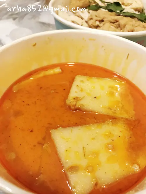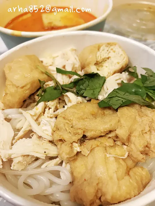 去開九龍灣,夜晚去咗呢間茶室買嘢返去食,朋友嘅檳城福建蝦麵,就咁睇配料有豬腩肉、蝦、烚蛋、通菜、炸乾蔥,下層就係油麵同米粉,湯底就分開碗嚟裝嘅。我就買咗星加坡喇沙,同樣分咗兩個外賣紙碗,呢碗係雞絲、豆卜、蝦肉、烚蛋、九層塔、芽菜同米線。呢碗就係喇沙湯,面層泛起紅色嘅辣油,湯入面仲有幾片魚片。將所有配料放埋一齊,再倒咗三分一喇沙湯入去,份量已經多到就嚟滿咁。喇沙湯飲落有椰汁香,辣度輕微都幾惹味。雖然價錢唔平,不過啲配料都幾豐富嘅。…查看更多