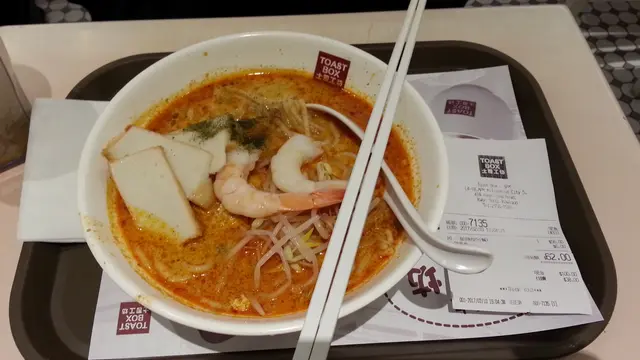 久違了的新加坡式茶餐廳, 已經忘了上次去 toast box日子。 今晚打完波, 和朋友苦愁食咩呢!? 最想飲杯凍飲。 平時客常滿, 此時竟然有半桌位, 即刻坐下。這裡快餐式自助購買, 到收銀機前付款後, 可以先取所買到的飲料, 至於食品,店員給一個號碼座, 只要放回自己餐枱, 當食物準備好, 侍應就送上。今晚收銀員帶著親切笑容, 想食的娘的飲惹麵線售罄, 她很有禮介可以選食其他, 我選了叻沙和一杯薏米水。 現在好味容易友善難, 香港人時趕迫, 令很多員工也只顧工作運作, 而忽略人情味。待客之道, 賓至如歸。…查看更多