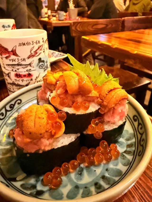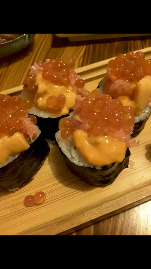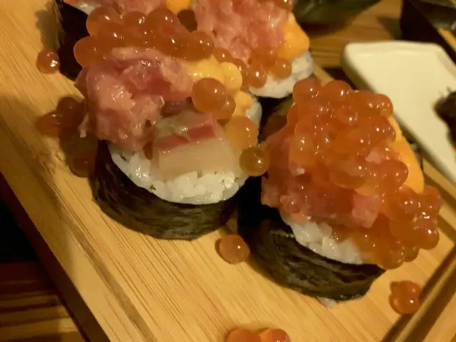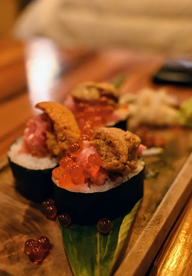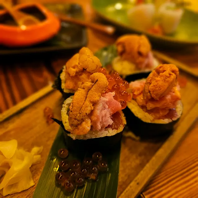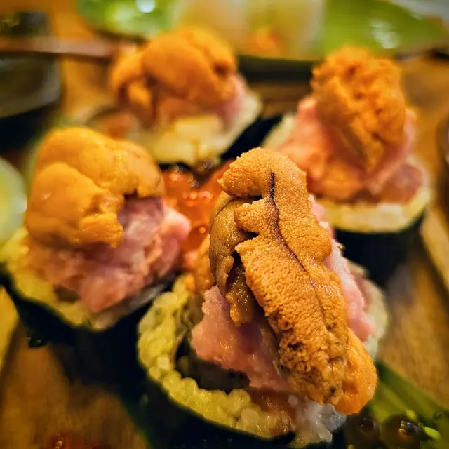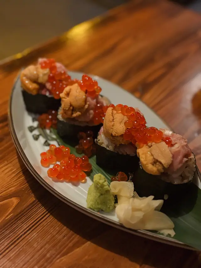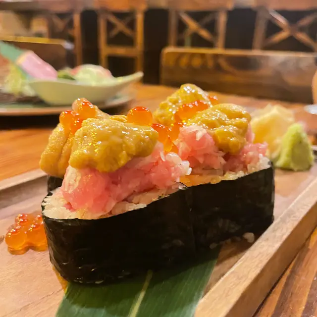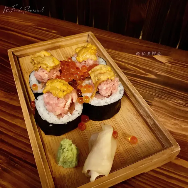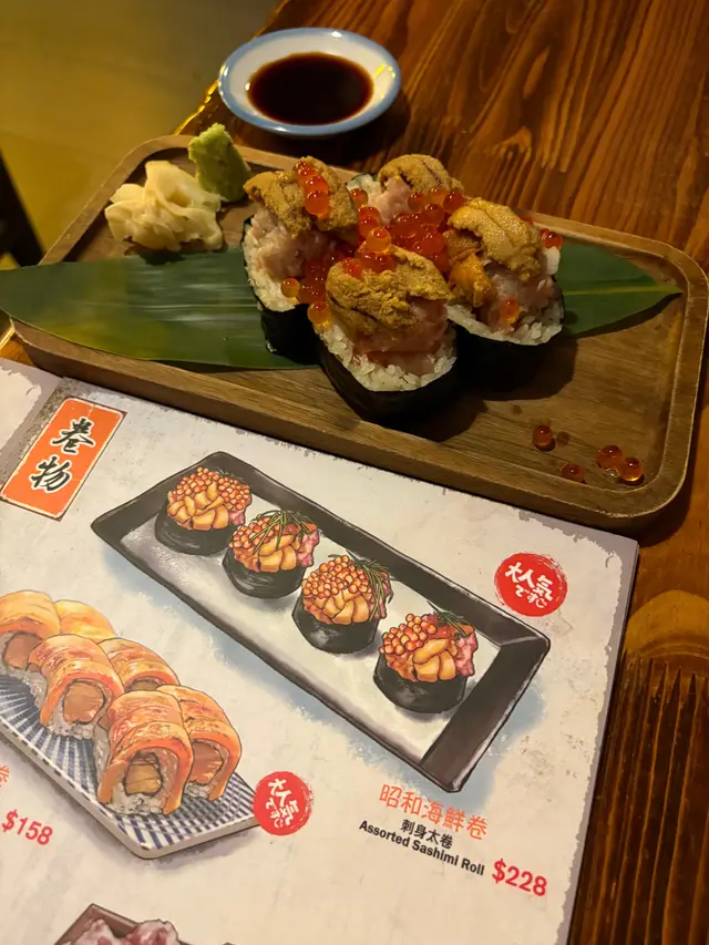 昭和海鮮卷上鋪滿海膽、三文魚子和吞拿魚蓉,色彩鮮艷