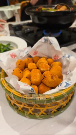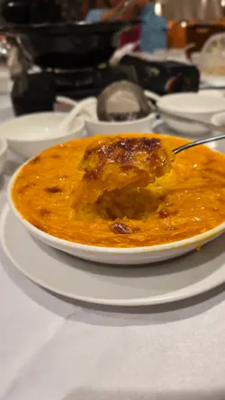 不久前才來鳳城嚐過大閘蟹餐, 得知它又出了別的套餐, 所以趁季尾再來嚐多一次, 不過今次並沒有訂廂房 😆 雖然沒廂房, 私癮度自然欠奉, 但比想像安靜 😊 肆人大閘蟹宴 $888時令大閘蟹 x 4太史五蛇羹秘製羊腩煲一口金磚豆腐脆皮炸子雞魚湯杞子浸豆苗軀寒薑茶每位只需$2百多元, 真的超便宜!! 今次的大閘蟹不及上一次大隻, 未有列明重量, 所以蟹的大少就視乎彩數 🤭 雖然比較細小, 但依然有不少蟹膏, 而且都是很鮮甜的 🥰蛇羹和羊腩煲都用爐燒著, 吃的時候依然是熱騰騰, 尤其蛇羹更暖胃, 吃後感覺有道熱氣在身體裡流走 ☺️ 蛇肉非常多, 每一口都有, 蛇肉口感有點像雞絲, 但比雞絲煙韌, 而且蛇肉獨有的味道, 對我而言是略帶苦澀, 同時不會有豬牛雞那種鮮肉味, 難怪我以前不愛吃蛇 😆 另外蛇羹加了陳皮, 會有回甘滋味。 羊腩十分肥美, 完全不羶, 每人大概可以吃到2件, 另外有大量配料, 例如腐竹, 馬蹄, 冬菇等等, 羊腩煲不可以煲太久, 否則越煲越鹹!豆腐磚跟炸子雞都較脆身, 對比之前豆腐磚沒那麼脆口, 同樣需要加少許椒鹹才會突顯味道。炸子雞外皮又脆又薄, 沒有肥膏, 肉質滑溜, 略帶鮮雞味, 果然是其中1道招牌菜, 沒有令我們失望 🤗今次單純給我們1杯薑茶驅寒, 辛辣味比上次更重! 🤩 反正湯圓亳無賣點可言, 就這樣1杯薑茶反而更好, 而且更辣就更合我心意 🤣 臨尾再送了個西米焗布甸給我們, 甜度剛剛好, 比一般蓮蓉份量少, 蓮蓉都放在旁邊, 加了蓮蓉會較膩, 但口感上除了帶有粘性的布甸, 還有糊狀的蓮蓉, 口感會豐富點, 也會再中和一下甜味, 所以我會比較喜歡有蓮蓉的。雖然這個套餐不及上一次豪華, 但依然保持應有水準!…查看更多