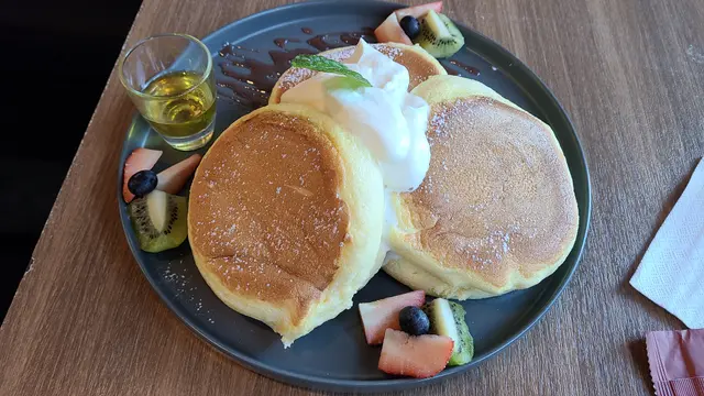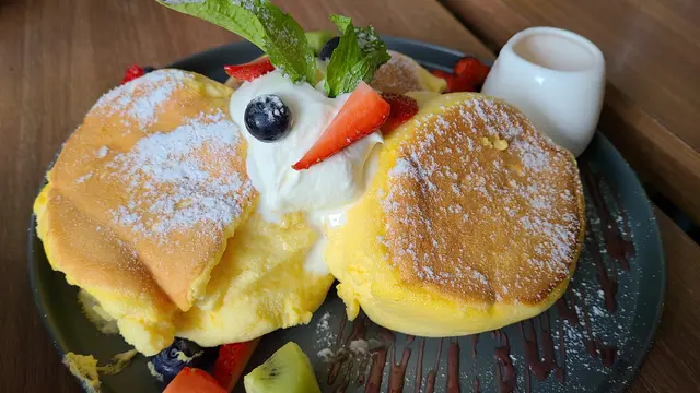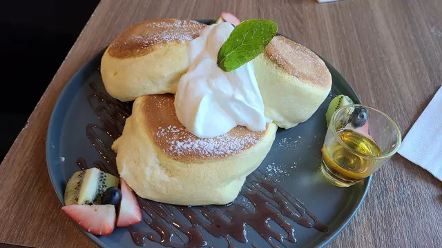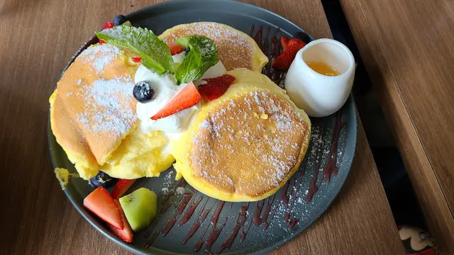 今日要去黃竹坑醫院探病,順便去Bread and Bistro食午餐,Bread and Bistro當然唔止得麵包,呢一間cafe仲有全日早餐,沙律,冷烏冬,冲繩特式塔可飯,咖哩,pizza,湯飯,拉麵,湯烏冬,意粉,飯,兒童餐,飲品,同甜品。重點係有我鍾意既梳乎厘班戟!!!星期日1點9到都要等幾張枱,好旺場!好彩最後都係等左20分鐘左右。今日每人叫左個主食再加一份梳乎厘班戟分享。日式原條鰻魚飯配炒蛋 $158 另加一果然係大大條鰻魚,肉質好彈牙,味道又夠鰻魚汁,正。鰻魚面頭灑滿黑白芝麻粒,仲有蔥花,都有兩片脆口黃色蘿蔔漬物。鰻魚下底就係一大片滑蛋蓋住白飯,再加上豐富醬汁,食落都夠味,蛋配飯食都唔錯。吞拿魚牛油果冷烏冬 $158 另加一吞拿魚牛油果冷烏冬面頭有4片外熟內生既吞拿魚,質感非常好,好嫩口,味道帶少少黑椒既辣。吞拿魚下底原來係幼身冷烏冬,食落煙煙韌韌中帶爽口青瓜絲同滑溜牛油果蓉,口感特別。伴碟有好多羽衣甘藍同生菜,仲有一粒車厘茄同檸檬塊。可選意式醋汁或者和風芝麻醬,我地揀左後者,餐廳體貼地另上,加沙律食實在係太好味同邪惡。時令水果梳乎厘班戟 $128 另加一上次試過呢度既梳乎厘班戟,今日絕對係為左佢而黎。梳乎厘班戟製作時間35分鐘。一落單我地就叫服務員可以起,剛剛好食完主菜就有得食。時令水果梳乎厘班戟同上次一樣,三件梳乎厘班戟非常大件,隱隱聞到蛋香,食落果然非常之有空氣感,水準不俗!伴有非常香滑忌廉,送班戟食真係一流。鮮果有士多啤梨,藍莓同奇異果。班戟上面灑上糖霜,其他醬料仲有士多啤梨果醬同一兜蜜糖。加一球意式雪糕加$20,有雲呢拿同朱古力味,今次揀左朱古力味。濃味雪糕配蛋香班戟真係好味道。呢份時令水果梳乎厘班戟份量大,味道高質,而且唔洗排長龍,價錢都唔算貴,值得為左佢而黎。下次又黎食梳乎厘班戟先!…查看更多
