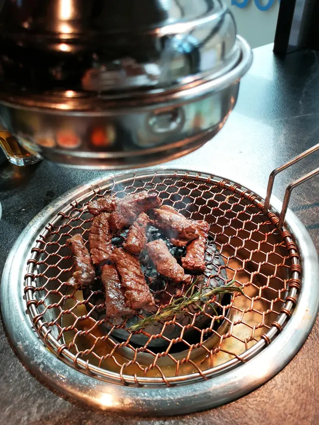最上等牛肋骨網燒好快就聞到牛嘅油脂香氣,同迷迭香草味非常夾。牛肋骨都啖啖肉,牛雪花分佈均勻,有口感。升級棉花糖壽喜焼和牛西冷(2件)兩片油花滿滿嘅牛西冷薄片,以壽喜燒湯底煮熟,配上蛋黃及一口日本米,口感柔軟香滑!大蝦充滿蝦膏嘅大蝦,肉質雪白彈牙,啖啖肉。泡菜五花肉煲微辣嘅泡菜豆腐煲,煮沸後泡菜更顯甜味,豆腐豆味香濃仲好滑,五花肉~肥瘦有層次,豬皮部份彈牙,豬肉柔軟,肥肉香口。韓式原味炸雞(半隻)雖然同我想像有啲唔同,但炸雞鬆脆唔油膩,無雞皮,都好嫩滑。韓燒必點梳打~ 柚子檸檬梳打水,青檸梳打,兩款同樣清清淡淡甜,非常合適清新口腔嘅燒肉味。餐廳仲有五款前菜…Read More