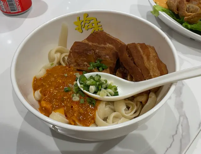 大胃之母嗰碗就正啦,係加咗好多料嘅熱拌刀削麵,東坡肉肥而不膩,肉綿入味
