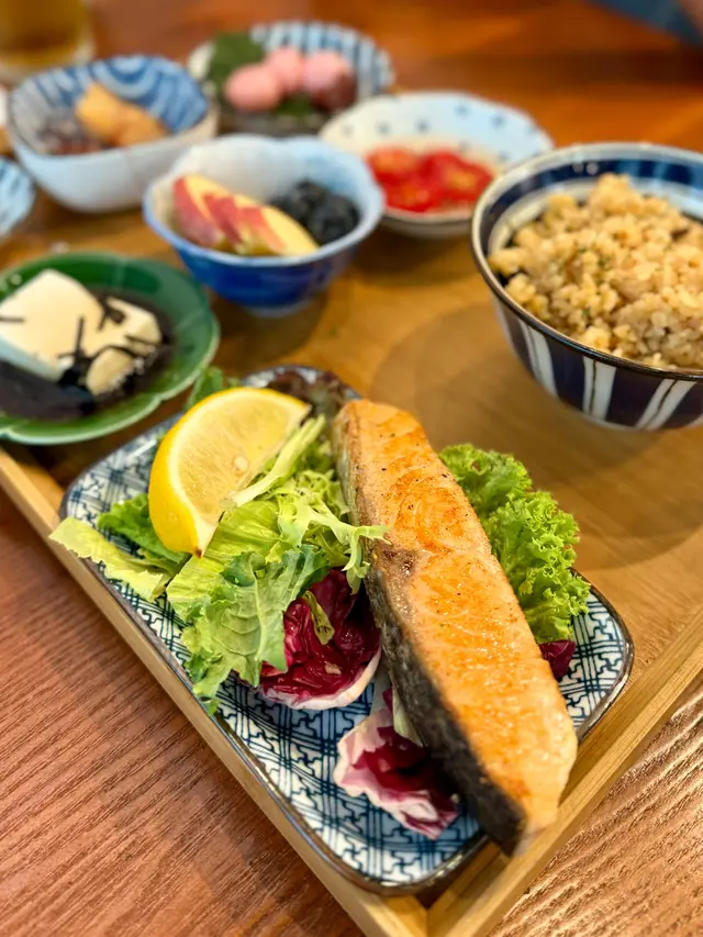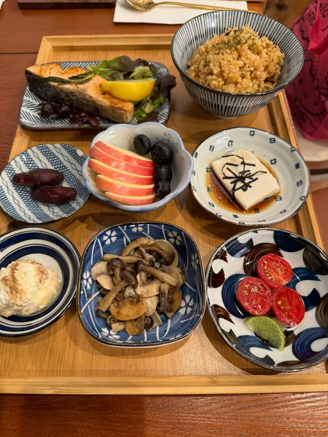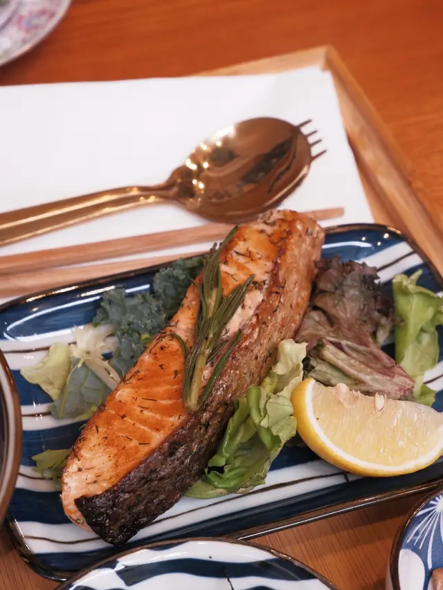 餐廳裝修簡約優雅,感覺舒適。食品西日泰式俱備,而且加入養生元素,別具特色。這裏用掃碼方式下單,網頁清晰易用,方便快捷。侍應服務殷勤細心,不收加一服務費。😊💟松茸味噌三文魚春之定食 $148 🐟🍱 賣相吸引,包括三文魚、松茸菇飯、野菜、時令水果及甜品。三文魚外層香脆,內層肉嫩多汁,配上滿滿松茸香氣的松茸飯,風味獨特。💟流沙溫泉蛋卡邦尼 $88 🍝 煙肉煎得香脆,咸蛋黃味濃郁,溫泉蛋滑溜,配上洋蔥🧅及蒜來提升整體風味,意粉口感豐富。值得一試!💟套餐附送一杯凍岩茶,亦可優惠價升級飲品。飲品選擇豐富,包括咖啡、茶類、燕麥奶昔及梳打。🥤☕ 跟餐優惠價加配:核桃蘋果香蕉燕麥奶昔(無添加糖) $38 🍹 入口清新,燕麥奶滑順,無添加糖更健康。口感豐富,營養滿分!💟自家製開心果巴斯克蛋糕 $65🍰 開心果味濃郁,口感綿密,旁邊還有開心果碎,增添風味,是非常出色的甜品!…查看更多