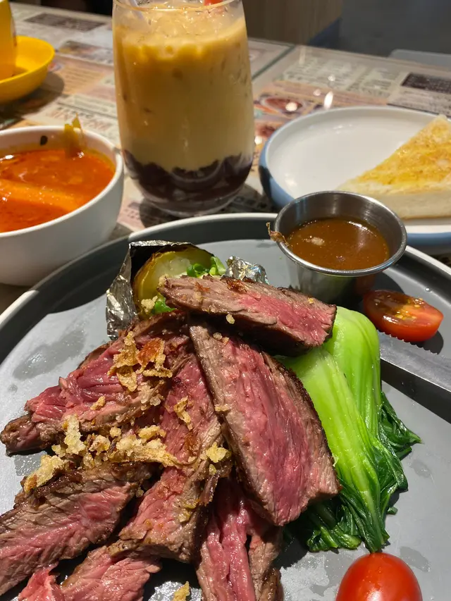 搵食工房😋😋😋搵食搵好嘢食搵食工房Look for Eat真係一間高質而又平民價錢嘅抵食餐廳、餐廳以木色與白色為主配上玻璃反射光線空間感很寬敞、很舒服!搵食工房食物多元化、有中式、西式、印度咖喱、焗飯、漢堡、扒餐、意大利飯、沙律等等、真係有很多選擇!👍🏻👍🏻Steak up: 板燒紐約極級風門柳$148⋯肉質好嫩、以簡單嘅鹽、黑椒已經配合得好好味、點埋個醬汁就更加惹味、豐富口感、另外配上沙律醬薯蓉、有靚餐湯(紅湯、酸酸辣辣好開胃)+多士+轉特飲+$6新潮奶茶紅豆冰、奶荼香濃幼滑、加埋大大粒紅豆、口感豐富很配合、紅豆🫘香稔好有紅豆味、新鮮感、好好飲😄真係超級抵食!👍🏻👍🏻👍🏻 Fusion Pasta: 芫荽大蝦意大利麵配軟殼蟹$72⋯用芫荽烹調嘅意粉真係好特別、好適合芫荽群組嘅人選擇、顏色好chill未食已經好吸引、再配新鮮靚蝦🦐、🍄、靑、紅椒🌶️、洋蔥、加上脆口軟殼蟹、賣相好靚、回味無窮!👍🏻👍🏻👍🏻小食:黑松露鹹蛋黃雞翼配沙律$43⋯雞翼大大隻、炸得外層脆口、肉質嫰滑好Juicy不油膩、蘸上黑松露鹹蛋醬、相當邪惡、咬一啖、滿口充滿黑松露味yummy 😋 👍🏻👍🏻芝士流心西多士、西多士入面嘅芝士超爆醬、分量超多、好邪惡⋯⋯😜😜#抵食茶餐廳#馬鞍山#性價比高##搵食工房Look for Eat#^*^馬鞍山鞍誠街8號新港城中心大街(三期)地下28-29號舖~港鐵馬鞍山站B出口…查看更多