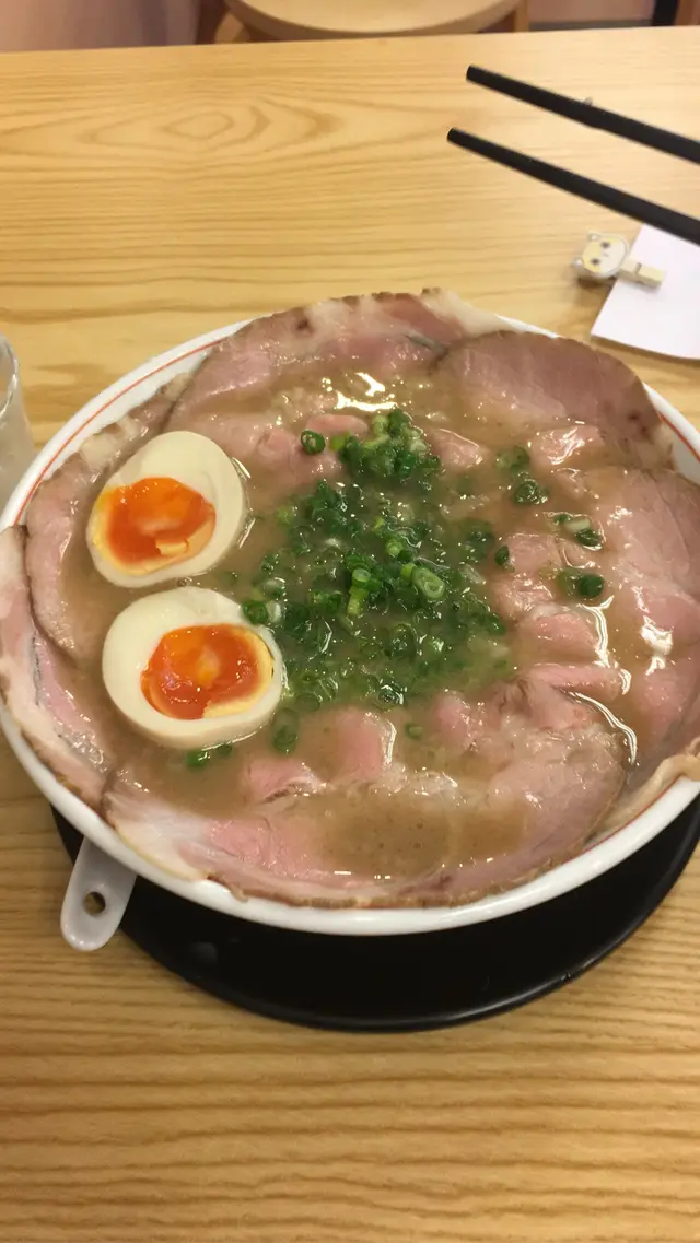 鋪頭地點十分方便,一出地鐵站見到7-11行幾步路就到。一去到見到有人龍排緊隊,大約七至八個,見佢鋪頭細細,以為會排好耐,好彩d職員都安排得好快,大約排15分鐘就到,係排隊個時,職員已經會比餐單你填,可以加快上餐時間。本店招牌係叉燒,我見佢餐牌最大張圖係極上叉燒,就點呢個試下,果然係招牌,一入口充滿油香同埋好夠林,仲有d叉燒放得好整齊,圍住個碗邊放👍🏼另外,我覺得d麵質幾煙韌。 湯底我揀左豚骨清湯,係幾濃味,但我認為咸左d。我個人認為加左枱上嘅配料 “蒜蓉”會更加香。…查看更多