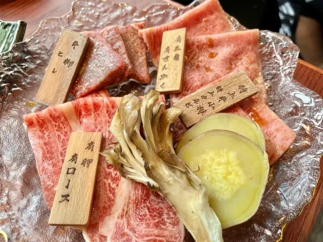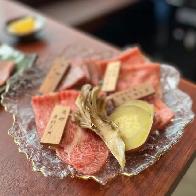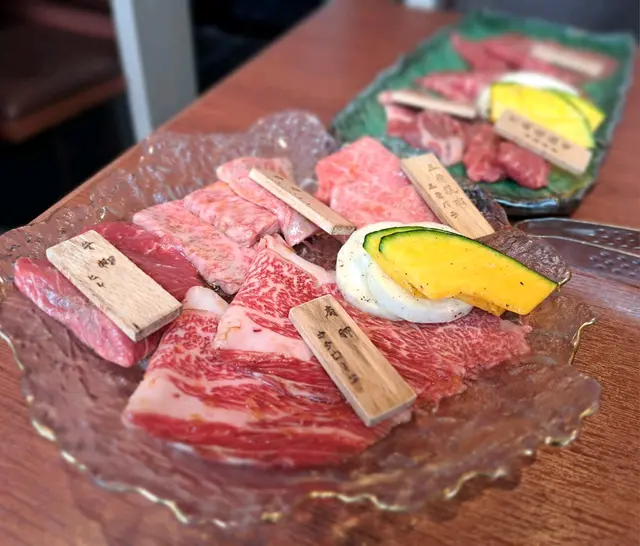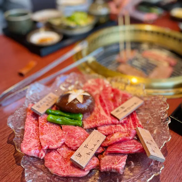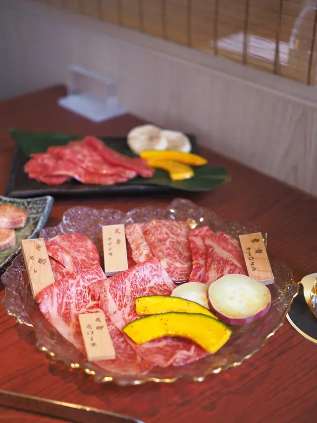 之前去過呢間食午餐 覺得質素好好 所以又再食多次😆原來呢間餐廳既和牛係由東京有過百年歷史既和牛供應商 「日山蓄產」供應 主要供應薩摩A5和牛 每隻牛都有證書🤩A5黑毛和牛既lunch set由$290起 每個lunch set都會有茶碗蒸、昆布豚肉湯、漬物、牛腩大根、芝麻醬沙律、日本米飯🍚 享用完和牛之後仲會有一份黃豆粉蕨餅 十分豐富☺️唯一不足係個爐真係好熱 我拎住個夾反幾下d牛已經覺得隻手熟熟地咁😂😂🍴極上A5黑毛和牛燒肉盛合定食 ($480)和牛總共有10片 份量都唔少😆 4款和牛分別係三角腹肉、西冷、肩胛、牛柳 三角腹肉同西冷既油脂平例極高 雪花十分多 和牛呈淡淡既粉紅色🫶 雖然肉味唔太濃 但係入口即融既感覺真係令人欲罷不能🥺薄切既肩胛肉油脂比例無咁高 但係油花分佈得好均勻 稍微燒熟之後 都係入口即化 而且肉味比較濃😋牛柳比較厚身 油脂比例最低 肉味濃 有d咬口但係肉質都幾嫩滑👍🏻🍴A5黑毛和牛赤身燒肉盛合定食 ($320)赤身顧名思義油脂比例無咁高 但係肉味就會比較濃❤️ 和牛份量同樣有10片👍🏻 4款赤身包括有後腰背肉、肩三角、橫隔膜、內側後腿肉後腰背肉同肩三角比起極上盛合既和牛 明顯雪花少好多 牛肉亦都呈深紅色 但係始終都係A5和牛 雪花分佈其實都好均勻好靚☺️ 我尤其中意肩三角 雖然未去入口即化 但係肉質十分滑嫩 肉味濃得黎 又食到油脂既香味 真係好正🥹🫰🏻橫隔膜同內側後腿肉都係厚切既 雪花更加少 但係肉味好濃😌 橫隔膜幾有咬口 有唔少肉汁 都幾香👍🏻 內側後腿肉肉質就比較扎實 我自己就覺得普普通通我覺得呢個價錢食到咁高質素既A5黑毛和牛真係性價比幾高🫶🏻 大家都不妨去試下😆…查看更多