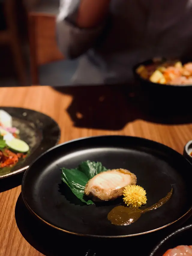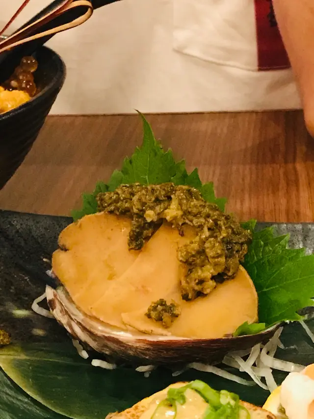 右口魚邊魚壽司右口魚略略燒過,帶一種香味,再令左口魚既油香味帶左出黎,幾乎人口即溶。刺身方面,