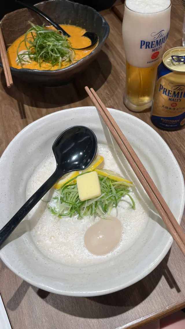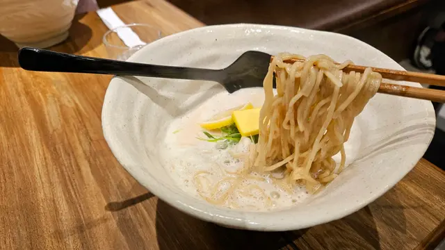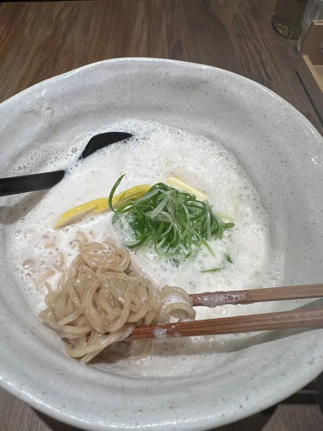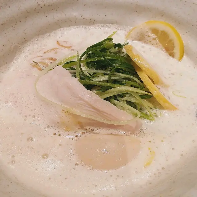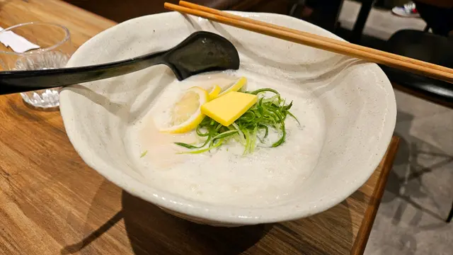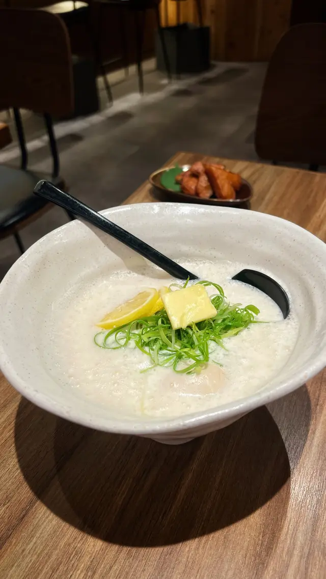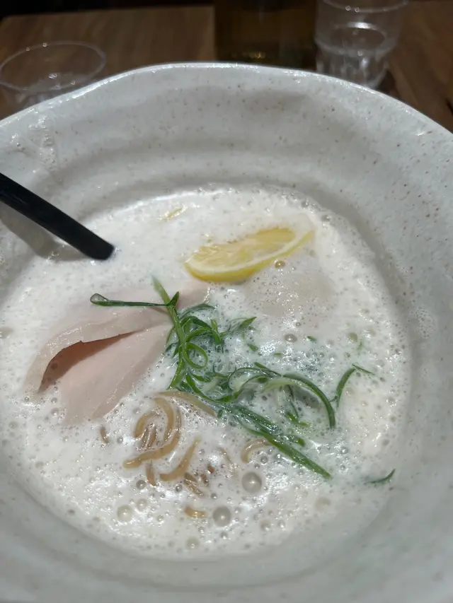 孤陋寡聞, 真係唔知道鹿兒島都有出名嘅雞白湯拉麵。月詠嘅雞白湯唔係傑撻撻嗰隻雞白湯, 有啲似豆漿嘅感覺, 飲落口有些小鹹, 但整體都係滑漏!我叫咗碗檸檬牛油雞白湯拉麵, 檸檬中和咗牛油嘅油膩, 牛油令到個湯底更加滑漏。佢哋用嘅係蕎麥麵, 畀傳統拉麵爽口, 加埋檸檬味令到成碗麵有清新嘅感覺。溏心蛋正常發揮, 雞胸肉嫩滑冇黐牙。廣島黑酢拌炸雞肉汁豐富, 炸粉都幾厚, 略嫌味道單薄左少少!反而個豆腐野菜煎餅略有驚喜, 質地好滑, 配埋青瓜絲一齊食, 口感好特別!用qr code落單, 其實都冇乜服務可言, 但裝修非常日式, 座位亦都坐得舒服, 咁嘅價錢, 其實都真係唔錯, 不過嗰啲鍾意濃厚雞白湯嘅人就未必鍾意啦!…查看更多