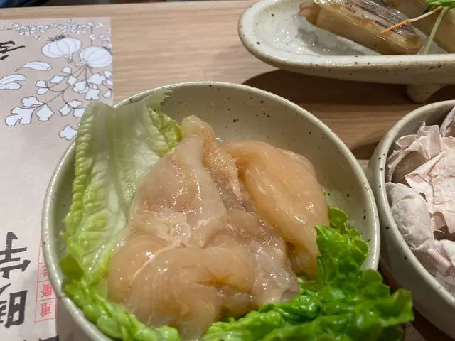 餐廳先送上免費冰糖雪耳糖水滋潤腸胃。然後可以依據自己喜好調醬料,麻油味香濃,加上少許麻辣湯入醬料中,確是一絕。點了駌鴦麻辣湯底,重慶麻辣湯底配豬骨湯,午市有免費湯底,好抵食﹗之前食過普通辣,發覺重慶麻辣湯底更香濃刺激。值得一讚之處餐廳容許客人可以點半份火鍋食材,可以讓人數少客人品嚐到不同配料。而且上枱時清楚寫明每份食材下鍋時間,夠晒貼心﹗桂花蚌半份$66:自己好鐘意食,上網一查先發現原來桂花蚌係海參內腔肌肉,口感極為爽口,鮮甜海水味。鮮黃喉半份$59:質地脆嫩,口感非常好,香味濃郁牛心椗半份$32:第一次食,原來係牛黃喉,心臟大動脈血管,同黃喉一樣爽口不過我都係偏愛鮮黃喉一點﹗鴨血半份$42:一開始就放係麻辣湯,一段時間後,夾上黎仲係香滑入味﹗凍豆腐半份$16:內裡蜂巢狀,索晒麻辣湯底,夠惹味﹗曉宇苕粉半份$29:滑身,煮熟後呈透明狀,煙韌有咬口﹗田園菜籃$42:放落豬骨湯好清爽~衝上雲霄百香果雞尾酒$38:需要攪拌開杯中百香果粒,帶有微微酒味,冰凍解辣一流~…查看更多