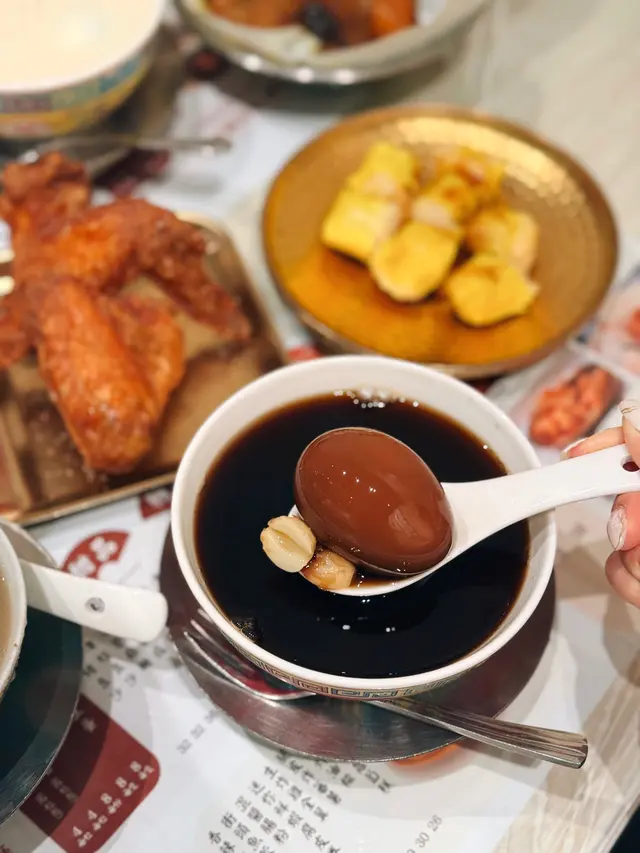 食完飯又太早當然搵番間糖水舖再繼續傾下計~平時食得多冰/雪糕之類嘅甜品,一行三人今次大家都想食中式,傳統又養生。呢間百年糖水店重開左幾個月,主打經典中式糖水▪️桑寄生蛋蓮子茶$48呢到嘅招牌名物!!必試~飲落味道溫和,春夏天飲袪濕,補肝補腎,對於成日夜訓嘅打工仔好適合。蓮子仲係店家每日人手去芯,糖水甜而不膩▪️鮮白果腐竹雞蛋糖水(凍) $38非常奶滑~而且味道好濃,好似飲緊濃豆乳嘅口感,腐竹大大片💯分▪️凍綠豆沙$32粒粒綠豆口感,少量起沙,清熱解毒之選▪️香辣咖喱魚蛋豬皮$24估唔到都幾辣,豬皮好Q彈🤓▪️生炸雞全翼$35 雞翼夠晒厚肉大隻,炸到卜卜脆,唔會好乾,肉質嫩滑▪️街頭魚蓉燒賣$22一份7粒,有點小貴,味道正常…查看更多