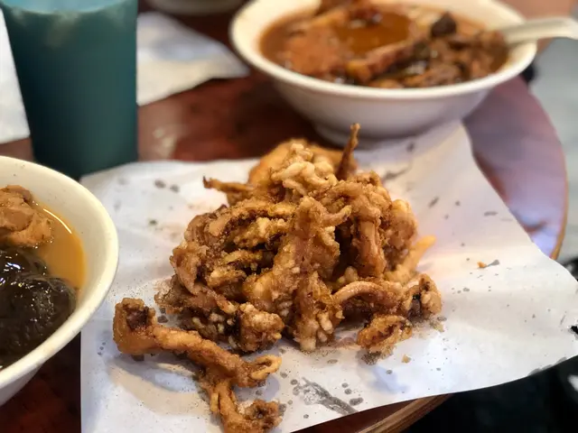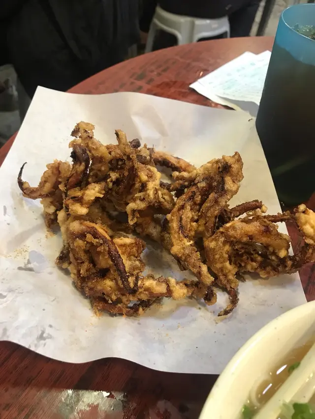 朋友就走蔥、加左腩汁同少辣汁個辣汁超級香辣,少少都夠晒辣唔食得辣嘅記得揀少辣呀!椒鹽魷魚鬚