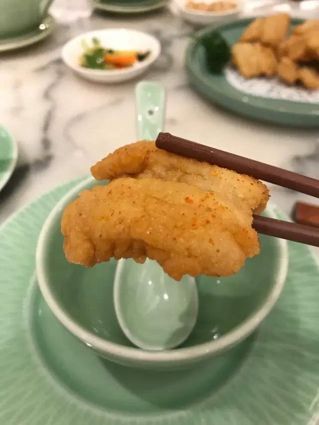 朋友定了戲曲中心的滿樂中菜預祝中秋。順便參觀下戲曲中心佈置。朋友定了房間,整顿晚餐也在清静歡樂環境中渡過。人末整,先點個椒鹽九肚魚吃住等。油炸功夫很好,魚件乾爽,如果椒鹽重手些更好送酒。另外也點了金沙炸魚皮凉瓜(忘了拍照),咸蛋黃咸香,一樣乾爽比九肚魚更惹味好吃。招牌片皮鴨堂切片皮鸭,侍應生擺盤也很用心,每片薄餅中間也有蒸籠紙分隔方便取吃。鴨不肥皮也鬆化,不過不失。蜜汁义燒半肥燶义燒,肉質鬆化蜜味濃,好食,性價比高,必吃之選。杏汁燉白肺湯高湯豬肺,後加杏汁便沒有其他配料。湯頭入口順滑濃郁,滿口杏香,豬肺嫩滑。金瓜九肚魚烙這九肚魚烙配上南瓜,蕃薯粉煎出來煙煙韌韌,也十分可口,不失為百樂潮州菜同一集團。梅菜扣肉這裡扣肉比很多客家店做得出色,豬肉和梅菜蒸得火路十足,豬肉入口溶化,久違了的好味道。鴛鴦胡椒焗蝦新鮮青楜椒配白楜椒粒焗蝦煲仔上,賣相討好,但楜椒味不能滲入蝦身,稍為失色。豉汁蒸白蟮這道菜,中規中矩,可以的。三菇燴六耳素菜不同菇類,乾菌,白合。配搭清爽,可惜很細碟。蛋白杏仁茶現做生磨杏仁露,入口香滑杏味濃郁,十分美味可口。這頓中秋節晚餐也吃得十分滿足合意。…查看更多