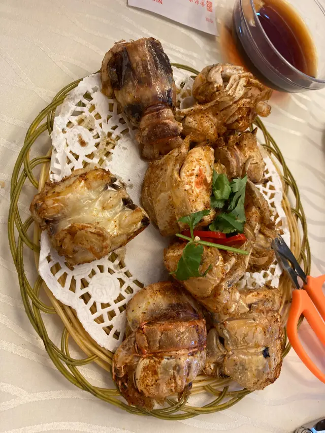 月前,老闆話食個晚飯,揀咗噚(5-7-2019 Fri )晚嚟呢間食,一行12人,我哋 食咗:1. 麻辣鴨舌唔係好感覺到麻,只係辣,都幾辣.味道:3分2. 沙薑雞腳雞腳好多肉,好腍味道:5分3. 齋腰果真係好齋,但口感正常脆唔太鹹,卻又OK.味道:5分4. 長腳蟹身上湯伊麵蟹身肉多,新鮮,伊麵唔會太鹹.不過冇剪到,建議可剪成半條.味道:5分5. 燒鵝一隻一直用火喺下面熱住,皮脆. 味道:5分6. 牡丹蝦刺身大大隻鮮甜. 味道:5分7. 椒鹽瀨尿蝦大隻,啖啖肉,好彩味道都溫和.味道:4分8. 豉椒炒蟶子蟶子大大隻,爽口.味道:4分9. 海鮮湯白色湯,內裡有白菜,味道同我喺屋企飲到嘅魚頭湯一樣.味道:3分10. 西蘭花應該係清炒,正常冇問題.味道:3分11. 陳皮蒸鮑魚Size 啱啱好,又厚身,爽口.味道:4分12. 椒鹽牡丹蝦頭同樣味道都溫和,蝦頭都有好多糕.味道:4分13. 蒜蓉粉絲蒸扇貝同樣係溫和嘅菜.味道:4分14. 象拔蚌刺身感覺有啲鯹.味道:3分15. 花鵰蛋白蒸長腳蟹腳蛋白蒸得滑,蟹肉同樣係鮮甜.味道:4分16. 腐魚通菜?唔太濃味.味道:3分17. 椒鹽象拔蚌頭粉漿唔厚,味道亦都係溫和.味道:4分18. .甜品我食咗一件椰汁桂花糕,味道好清淡,唔太甜.女同事又同我share全白色嘅,原來係益力多凍,口感做得啱啱好. 味道:5分總括,呢間整嘅海鮮唔係重口味,比較溫和,似家常做出嚟,感覺健康啲.服務:人齊叫可以上菜,但都仍等好耐.上菜冇公筷供應,呢點最好留意下.收碟係勤快嘅.…查看更多
