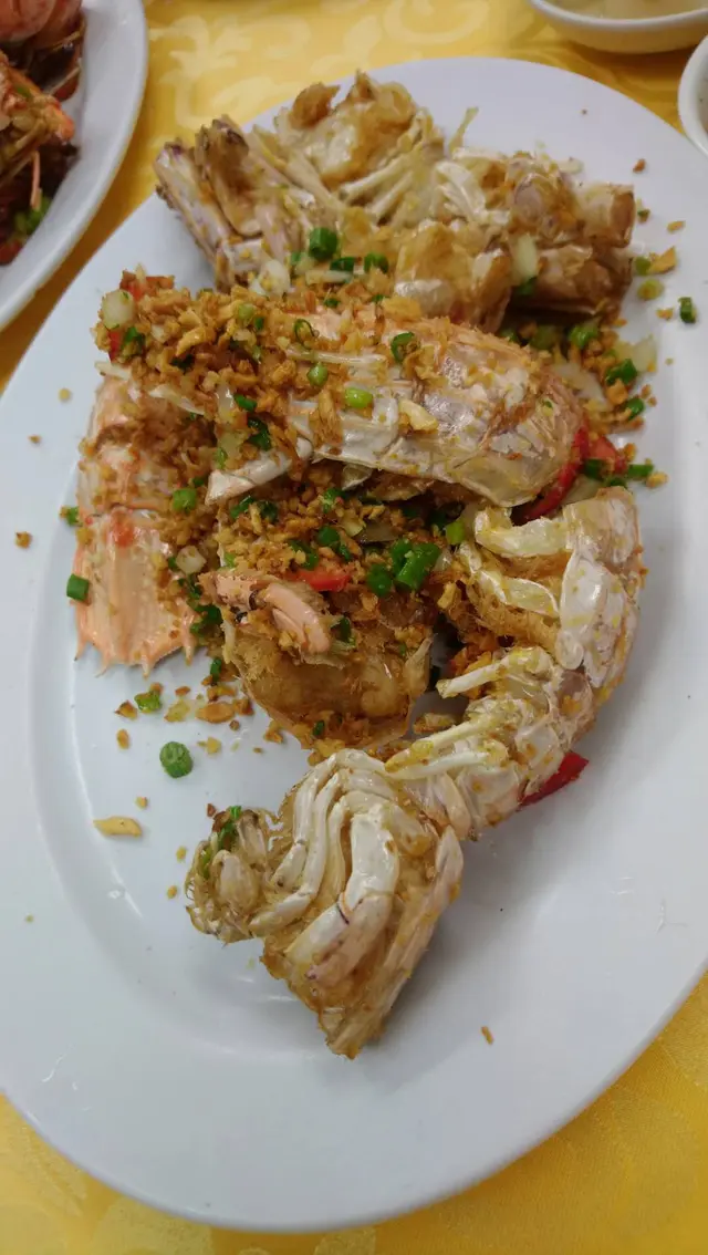 流浮山的海鮮酒家賣的菜式大同小異,在自己無法判斷下,早就到某網站找出排列第一的海景海鮮酒家。這家店下午一點半停止點菜,大概三點關門休息,我下午一點才下班,飛車而來。在車上已經想好要吃什麼,紅燒炆斑頭腩本來是我想吃又不敢點的,因為我們只有二人,點一條大魚怕吃不完,點小的做紅燒又怕不好吃,所以打算改吃蒜茸蒸扇貝。然而,侍應推薦紅燒炆斑頭腩,他說這是招牌菜,二人的份量也不會過多,這就不可錯過了!斑頭腩經過油炸,外層香脆,內裡的魚肉不差,但的確不夠鮮甜嫩滑,魚汁略少。重申絕對不是說它不新鮮,但並沒有遠道而來吃到特別新鮮的感覺,而且芡汁不夠,不過這道菜的確是我當天最喜歡,不至於敗掉招牌菜之名。椒鹽瀨尿蝦的炸蒜過咸,蝦肉不能沾太多蒜,但油炸的食物少有不好吃,我連蝦頭都吃掉。瀨尿蝦跟斑頭腩一樣,沒有不新鮮,只是不見得特別新鮮,肉質欠一點爽口彈牙。豉椒炒蟶子是當天最不滿意的菜式,芡汁的味道未能與蟶子融合,吃起來就像蟶子蘸豉汁吃,肉裡未能入味,而且欠鑊氣。朋友質疑蟶子是否新鮮,因為殼已被去掉,而且肉質有些過份結實。酥炸生蠔做出來的效果完全對辦,外層脆而酥化,生蠔美味多汁。唯一美中不足是蠔體偏細小,未能營造飽滿口感。我愛吃蟹黃多於蟹膏,而且不能沒有蟹肉,所以奄仔蟹有黃有肉正合我心意,不像大閘蟹有黃無肉,或其他蟹多半是膏與肉。這裡的奄仔蟹體形不大,但蟹黃含量不失禮,沾上一點鹽味道就上來,完全不用蘸醋,不用任何花巧的配料或做法已經好吃。當然,蘸醋另有一番風味,但無需用它來掩蓋任何問題。朋友對此店的質素不太滿意,因為沒有讓客人自行挑選海鮮,感覺食物新鮮程度平平,就跟一般市區飯店差不多。我並不執着於要自己挑選海鮮,但的確遠道而來沒有感覺比一般出色,然而我們二人都沒有感到不值,因為收費遠低於我們預期。五道菜的單價沒有列出,餐牌上也沒有展示任何收貴,不過加上兩支啤酒、一個白飯、飯後果(橙一個),$1200不算貴。我倒是希望花多一點,換取更優的質素,這家試過一次就好。…查看更多