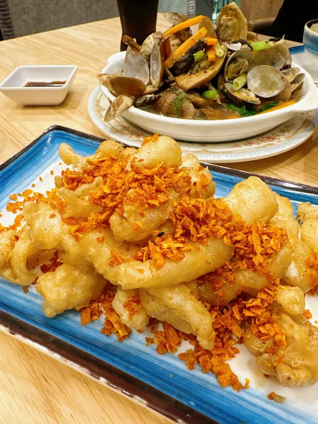 去九龍城唔一定要食泰菜今日等史努比介紹間大件夾抵食嘅港式小菜~懶人包📝食物款式多 而且大部份都唔錯雖然稱唔想話好正 但史努比試咗咁多款都冇話覺得伏 係偏油咗啲 不過呢個價錢ok收貨嘅😚嗌牆上面寫住嘅招牌菜都應該冇死架啦🤣加上佢唔使加一 食得舒服 好啱同一大班frd gathering或者同長輩食飯~個人覺得一試無妨😚🔥推薦芝士龍蝦伊麵👍🏿芝士龍蝦伊麵 $490份量好足😳4個人淨係食佢都夠飽😂芝士汁爆晒棚 仲要味道濃郁食落都幾黏口🤣同埋夠creamy 伊麵有𡁻口 唔會煮到淋晒要挑剔嘅係略嫌油咗啲啲🤏🏿龍蝦實肉彈牙 食到有少少甜味 正常發揮味道: 8/10性價比: 7.5/10👍🏿蟶子生菜包 $168都幾辣下 但真係好惹味🤣蟶子份量唔算特別多 有幾條完整嘅 有啲就剪碎咗撈埋免治豬肉去炒豬肉好淋 有油香食落味道幾香 有乾蔥增加口感不過如果冇芫荽就更加好😂同埋都係油咗少少 但包生菜就啱晒啦🤪味道: 7.5/10性價比: 7/10👍🏿豪門卷(8件) $98係炸包包住蝦咁樣 中間仲有啲蔥食落脆得來嚟帶啲煙靭 擺耐咗都唔會淋晒🤣👍🏿蝦就普通啦 包住啲蔥有香味另外配咗泰式甜辣醬 不過史努比覺得唔點好食啲味道: 7/10性價比: 7.5/10👍🏿千島百花盞鬼 $118呢個係油炸鬼包蝦😂炸得好脆 食到油炸鬼一層層layer但可惜食唔到油炸鬼本身嘅香氣包住蝦滑係幾得意嘅 加埋千島醬真係好鬼邪惡😈同埋好惹味!底下墊咗啲西蘭花 解解膩🤣味道: 7/10性價比: 7/10👌🏿椒鹽鮮魷 $128份量真係好足!!😳而且條條魷魚都勁大條食落仲要好彈牙 有咬口得嚟唔係硬佢個炸漿做到好薄 最可惜就係佢唔脆🥲搞到就算佢魷魚幾靚都即刻拉低咗個分但爸爸竟然話唔脆嘅椒鹽鮮魷好好食🤷🏿♀️味道: 6.5/10性價比: 7/10👌🏿人生之路(咕嚕苦瓜) $88唔明佢點解改呢個名 因為人生好苦🥹不過佢用咗酸酸甜甜嘅咕嚕肉做法😂所以真係體現人生嘅甜酸苦辣 個名史努比覺得改得好🤣🤣酸酸甜甜嘅炸苦瓜係幾得意嘅 但就唔係我哋杯茶🙂↕️感覺唔係咁夾味道: 6.5/10性價比: 7.5/10*不設加一服務費*整體評分:味道: 7.1/10環境: 7/10服務: 7/10衛生: 7.3/10抵食: 7.5/10(品牌合作分享)@snoopy._.eating…查看更多