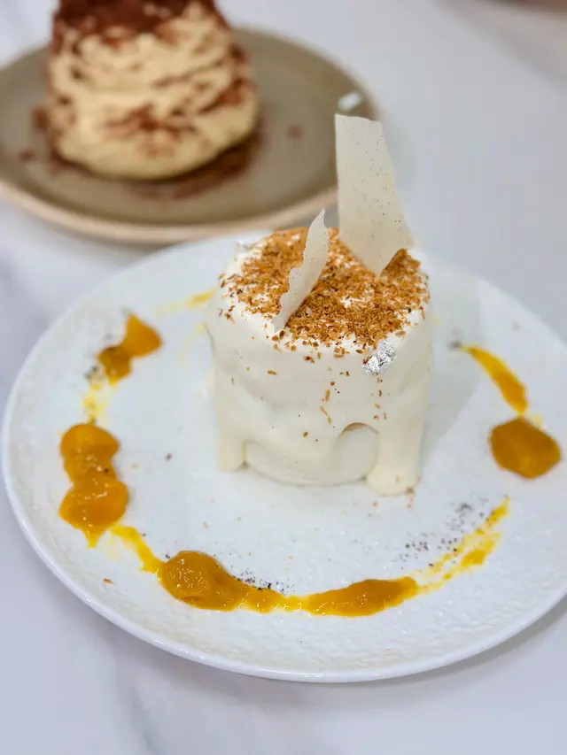 同朋友係深水埗食完生日飯,唔夠喉🤣無意中搵到呢間小店有好多特別嘅甜品🤩🥥椰子奶蓋芒果蛋白脆睇完menu俾佢嘅外型吸引咗,嚟到都冇令我哋失望!食落好清新,淡淡椰子香氣,中間芒果餡超級好味,一試難忘且打卡一流!🧐非傳統Tiramisu 會揀佢係因為好奇,想知佢有幾非傳統食落真係好唔一般外層係好濃郁打到好fluffy 嘅cream加埋裡面個層脆餅同出面嘅脆脆一齊食,口感層次豐富,而且咖啡味幾濃,略帶酒香真係幾特別,值得一試!因為得兩個人叫得唔多,如果下次再嚟,好想試吓佢地嘅蘋果酥盒,好似都幾唔錯咁😚…查看更多
