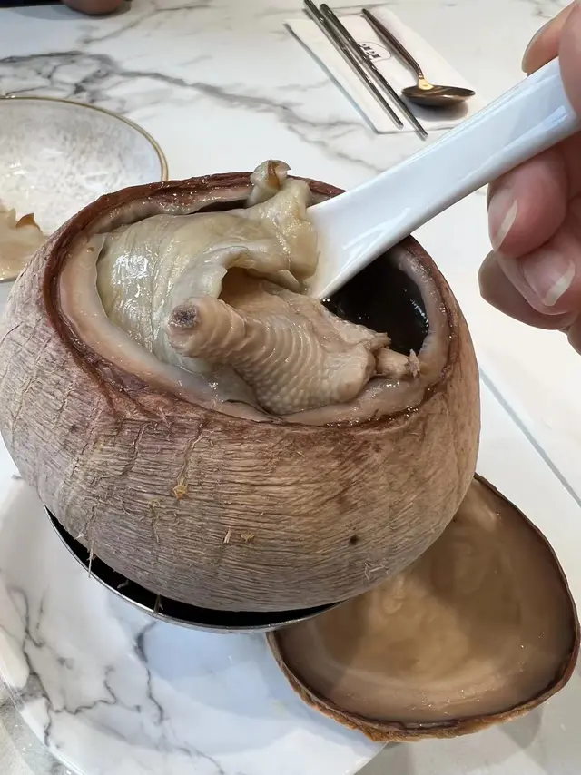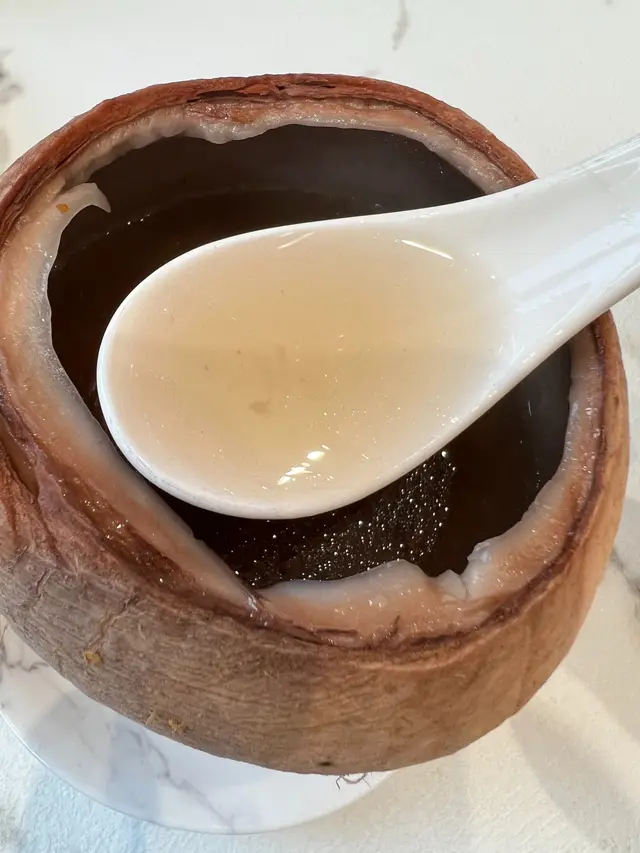 識飲一定係飲椰皇燉湯!椰皇內藏一個差唔多有成10CM長嘅花膠,仲有燉到好腍嘅雞腳,話晒都係養顏恩物,我媽同老婆立即趁熱飲返個補補佢先,相都影唔切!