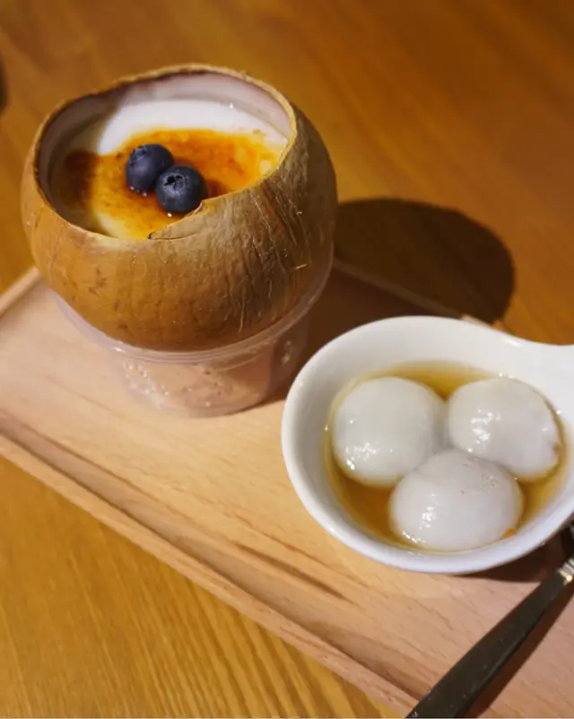 🥥 椰皇燉蛋白+湯圓($70)我同朋友都鍾意食燉蛋白,加上佢寫住係招牌同必食,又點可以唔嗌嚟試吓,佢有冷熱可以選擇,燉蛋面頭燒左層焦糖脆,燉蛋食落口好嫩滑,中間仲帶有椰皇嘅清甜味,正👍🏻湯圓係用左姜茶做底,一上枱就聞到好香嘅姜味,湯圓有花生/芝麻/鴛鴦味道可以選擇🍌 玉桂香蕉窩夫伴雪糕($48)一上枱就聞到好香嘅肉桂味,窩夫因為係即叫即整所以等嘅時間相對其他甜品會長少少,窩夫好脆身,配上撒滿肉桂粉嘅香蕉一齊食味道啱啱好🍫 朱古力心太軟伴雪糕($62)心太軟伴兩球自選味道嘅雪糕;心太軟熱辣辣,朱古力味濃,配合埋凍冰冰嘅雪糕簡直係冰火味覺享受🥭 芒果拿破崙($62)芒果拿破崙係即叫即整,份量都好大件,聽老闆娘講佢哋嘅酥皮係由西班牙進口,切落去非要酥脆仲要脆到有聲,配上吉士忌廉同芒果食,甜度適中唔會流,如果個焗嘅火喉細返少少就完美喇…查看更多