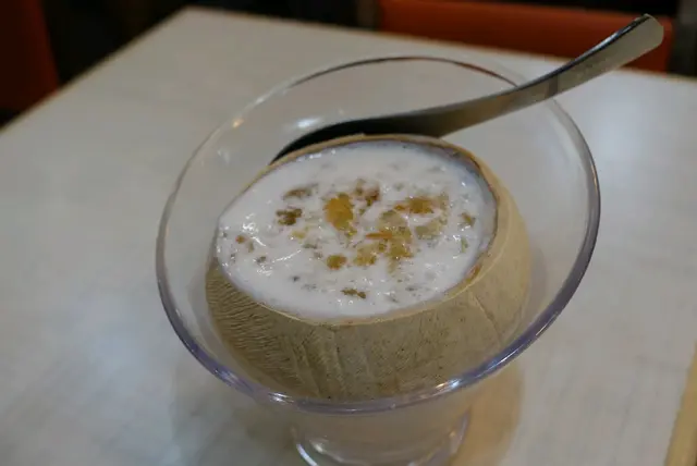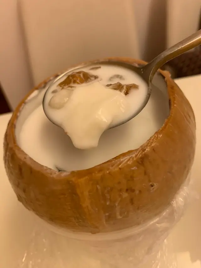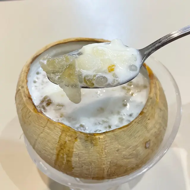 當日叫了兩款糖水:椰皇蛋白燉桃膠 🌟🌟🌟🌟🌟我自己超中意食椰皇既甜品/糖水,而且佢係店家推介的王牌,咁我一定要叫啦。黎到見到用左原個好大既椰皇做碗,入面裝到滿滿,食材非常天然超足料,重點唔係好甜岩香港人口味,蛋白重要超滑,果然係王牌👍🏼👍🏼推介(可選熱/冷)2️⃣黑糖芋圓仙草配雪糕 🌟🌟🌟🌟有得選擇芋泥/雪糕呢碗糖水又係超足料,成個碗都是滿的!我最中意裡面的椰果和仙草,味道好清甜,配埋雪糕涼透心🩵。…查看更多