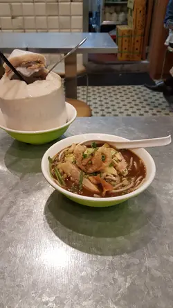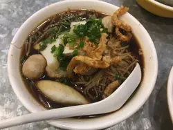 環境比起泰式風情,更令我覺得陀地。menu唔多,價錢亦令我好surprise,呢個地段竟然都做到接近街坊價(後來發覺同份量有關)豬肉什錦湯河雖然俾朋友warn過size,但上菜時都係一shock,真係冇見過用咁迷你同扁嘅碗裝湯河。講返味道,豬肉切成一塊塊有啲厚度,咬落仲係爽口,一啲肥肉都冇,又唔'hai',非常唔錯。湯底夠濃,粉煮得岩岩好