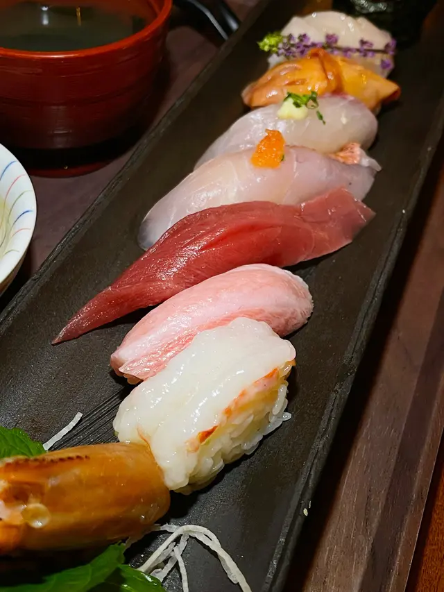 銅鑼灣魚鮮生刺身專門店,提供各款新鮮刺身壽司和丼飯,食材都是日本新鮮直送,裝潢走昭和日系居酒屋風格,午市套餐都是大眾化價錢,食物質素都不錯極上壽司定食 $388人氣no.1的壽司定食,共有10款壽司,用上時令魚生製作,每件都珍寶牡丹蝦壽司-肉質彈牙,鮮甜蝦味拖羅壽司-口感軟腍又肥美,油花豐富,入口即化鮪赤身壽司-入口細膩鮮甜金目鯛壽司-肉質軟嫩,入口散發陣陣魚香,鮮味滿腔池魚壽司-鮮甜爽口,魚味濃郁赤貝壽司-爽口甜美,非常新鮮珍寶帶子壽司-鮮甜厚身,嫩滑微爽,鮮甜清新馬糞海膽壽司-肥厚飽滿,香濃又creamy三文魚子壽司-粒粒飽滿明亮晶瑩,帶鹹香又鮮味京蔥左口魚壽司-魚油脂香加上京蔥很香口,炙燒過份外美味炸軟殼蟹手卷 $48大大件的軟殼蟹,炸得酥脆,外脆內軟,加上蛋黃醬吃很滋味玉子和風牛肉丼 $68上面鋪上滿滿的牛肉,牛肉份量比飯還要多,牛肉肉質嫩滑,拌勻蛋汁,加上洋蔥,珍珠米帶有飯香,滋味十足,超值之選…查看更多
