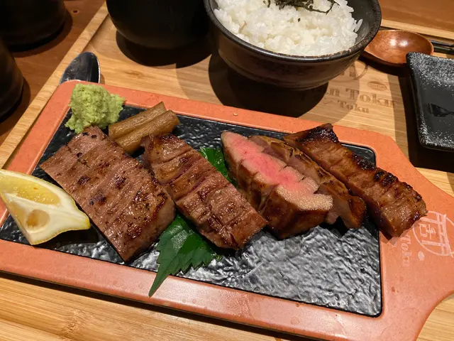 位於土瓜灣嘅Gyutan Toku牛舌專門店店內空間不大但充滿日本風情播住日語歌曲bgm牛舌系列定食十分高質👍🏻🍱極上牛舌定食 $178極上牛舌係牛舌芯部份有唔同份量選擇,1倍有五塊厚切牛舌牛舌鮮紅,帶有點點油光,賣相吸引🤤牛舌口感軟淋、微微彈牙,入口有濃濃油香🍋伴有鮮檸檬以及鮮磨wasabi,可按自已喜好調出不同風味定食配有茶碗蒸、小鉢、漬物、面豉湯茶碗蒸口感嫩滑,滲出淡淡高湯味道內裡配料豐富,有香菇、蟹柳、鳴門卷🍥🥒小鉢中盛有青瓜海蜇爽口青新,味道微酸🍚米飯圓潤,面層鋪有有拌飯素🥩泡菜牛舌定食 $148泡菜味道酸辣開胃牛舌切成條狀,口感同樣軟淋味道豐富十分滿足🥘土佐豆腐 $68炸豆腐皮吸收了鰹魚湯汁,帶點柴魚片香氣豆腐嫩滑,融合了豆腐和湯汁鮮味🍤吉烈炸蝦 $20吉烈炸蝦即叫即炸, 入口熱辣辣炸皮薄而脆,配上沙律醬相當滋味小店感覺舒適,牛舌定食質素令人滿足❤️…查看更多