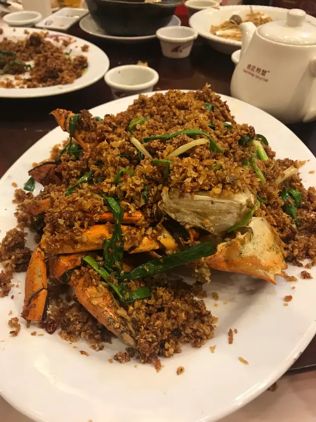 今天帶媽媽爸爸黎好出名既辣蟹餐廳食中秋飯,好耐以前已經聽過呢個名,一直都以為好貴同埋係遊客先食,睇下餐牌發現原來都affordable,小菜都係普通酒樓價錢,仲平過去酒樓食一圍。我地去左轉角位果間, 原來佢有幾間分店係附近。勁多韓國遊客慕名而來!黎到當然要叫辣蟹啦, 我地一家四口,叫左:辣蟹+ 例牌燒鵝 ($638)豉椒炒花甲辣酒煮花螺西蘭花炒斑球乳鴿咕嚕肉芥蘭炒螺肉上菜速度好快。辣蟹果然名不虛傳,大大隻好多肉,熱辣辣,鋪上大量炸蒜炸紅蔥頭,係成個蟹既精華同重點所在,隻蟹又夠新鮮有小小辣油,勁香口呀,用左好多炸蒜頭撈飯一流每枱都叫一隻!辣酒煮花螺必叫個辣汁調到好好味,甜甜地辣辣地,個螺好入味,變左橙紅色。花螺好新鮮!入面冇平時食螺最驚既內藏,亦都冇臭味。餸酒好岩食!燒鵝燒得夠味道,好香, 舊舊都好多肉 唔會得餸頭餸骨咁,皮脆肉嫩。乳鴿都好脆皮有油香~ 又係必叫既其他小菜都係幾高水準,咕嚕肉撈飯又係正, 港式風味小菜好有鑊氣,仲要個餐牌係勁多款式,下次再多d人可以叫下沙拉骨、金沙骨、牛仔骨果d~有沙薑雞,炸子雞,都好想叫!叫埋枝啤酒 🍻 成餐飯好有feel,屋企人都好滿足,冇介紹錯~店員好勤力幫我地換碟:)每人食左300幾蚊埋單 ,可以食到咁多海鮮🦞 都幾值得! 平過去鯉魚門/ 西貢食先。