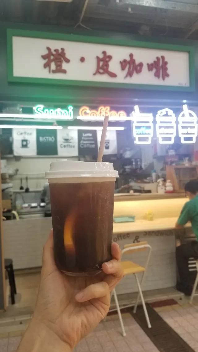 咁啱嚟到火炭做野,好眼瞓想飲杯啡,點知 search 到呢間咖啡小店,銀禧花園既街市叫"開心市場" 好搞笑,佢有一條小食街,有別於傳統街市,好似新型街市,都算乾淨...個地唔濕喺好多小食店中間竟然有間咖啡店,仲有2個座位,都見有幾個熟客買啡 or lunch,我本身想買熱既奶啡,見好多客都買熱啡。但望到佢店名叫橙皮咖啡,唔係唔飲佢個signature 橙皮咖啡梳打 橙皮咖啡梳打 (凍) - 一定凍,可以少冰,我見佢地有專業咖啡機整咖啡,應該係espresso + soda + 橙汁,梳打咖啡有點像有氣版americano,酸甜既橙汁提升咗咖啡既味道,唔錯!佢用紙飲管都值得一讚! 其實佢仲有好多sandwich 及 lunch set 可惜我今日趕時間試唔到,好似都好吸引。…查看更多