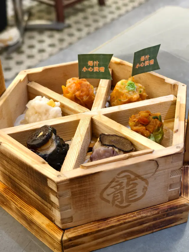 脆脆富貴紅米腸粉(5⭐️)外皮已經特別吸引食慾, 咬落十分爽脆。我最喜歡配上他的甜辣醬😘,不會令到腸粉嘅鮮味被搶走又可以有提升鮮味嘅效果👍🏻👍🏻歎世界燒賣拼盤(5⭐️)當中有包含6款特色燒賣, 感覺好似環游世界。黑蒜帶子燒賣:用蝦肉豬肉混合作餡料,配上澳洲帶子及黑蒜。爽口之餘,帶有黑蒜的甜甜感覺。外觀黑中帶白,感覺就好像一個紳士帶了一頂帽一樣💋。爽口之餘,帶有黑蒜的甜甜感覺。俄式羅宋燒賣:外觀看似普通燒賣,但咬落就會感受到有羅宋湯嘅滋味😘。有菜、紅蘿蔔🥕、肉熬製成羅宋湯,加入傳統餡料之中,感覺就有魚新派菜一樣👏🏻。芝士墨魚燒賣:第一次食芝士🧀味燒賣。芝士配墨魚🦑,爽口又彈牙。配上濃厚的車打芝士, 口感特別得意。 泡菜酸辣燒賣:起初以為好辣,但食落又覺得好特別的感覺👍🏻,酸酸辣辣的。 黑松露珍香燒賣:將名貴食材平民化, 可令食者可以有一種升呢嘅感覺🛗~黑松味相對比較濃烈,所以食落會有回甘嘅黑松露香…….冬陰功泰辣燒賣:呢款就充滿泰式辣的感覺而且海鮮味相對比較濃😘龍炸拼(5⭐️)當中有一口鹹水角、龍芋酥、蘿蔔絲酥、大澳蝦醬鮮魷卷。 一口鹹水角:細細粒夠特別,而且顏色好搶眼有橙又綠❣️龍芋酥:入口鬆軟,內裏的是肉碎粒蘿蔔絲酥: 要小心食😅, 因為好熱呀⋯ 大澳蝦醬鮮魷卷: 外皮爽脆、內裏的蝦肉有少少微辣份外惹味🤩章魚肉餅飯(5⭐️)飯質夠柔軟、肉餅爽口, 而章魚切碎放在肉餅上。令食客容易消化, 乜令香味慢慢滲入肉餅中😎鰻魚荷葉飯(5⭐️)鋪滿一層金箔,顯得特別矜貴而且利用荷葉包着飯一齊蒸,可以令到味道得以保存👍🏻。…查看更多