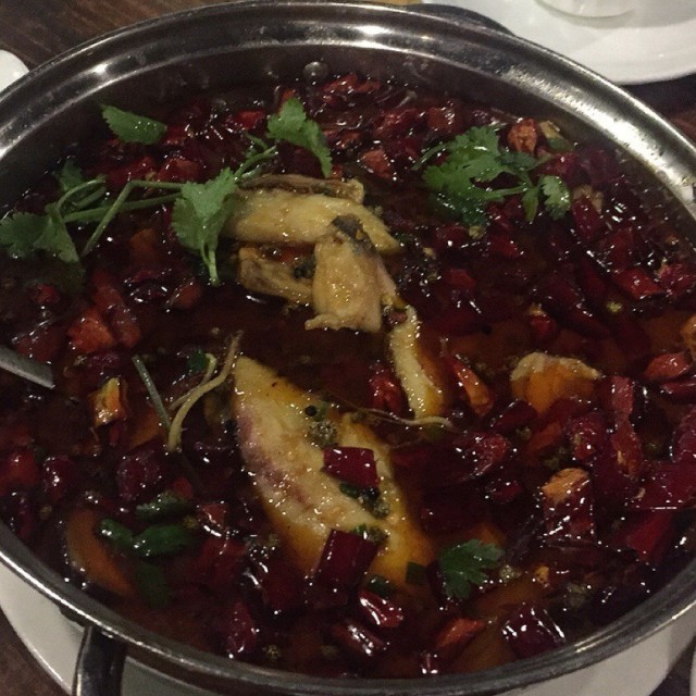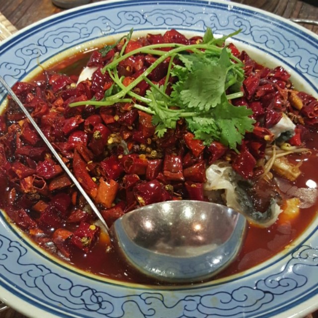 先談賣相,果然滿江紅。水煮魚片,是川菜中一道非色出名的特色名菜,由新鮮草魚、豆芽、辣椒等食材製作而成。與酸菜魚有點類近,不過前者比較看重油的運用,一般都不會特別喝「湯底」。.魚片用上無骨大頭魚,魚味特濃,略帶一點土腥味,亦沒有普遍酸菜魚吃到的滑溜感。辣度由一開始的「不夠辣」,後來愈吃愈刺激。待吃到最爽快的時候,魚已經吃光,剩下芽菜和寬粉。不過寬粉比較粉、靭,繼續吃下去的主因是嘴饞。🧡辣子雞