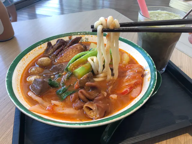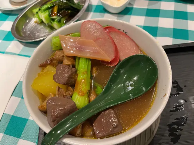 茶餐廳與車仔麵同為香港飲食文化的經典🇭🇰不僅是不少港人的療癒食品,亦是遊客來港必吃的地道美食😇———————————————————————這碗「大碗麵」名副其實,集齊九款車仔麵經典餸菜,每款都份量十足🤩當中最令我驚喜的是沙田店限定的咖喱魷魚🦑質感軟腍嫩滑,完全不是口感像硬膠般的劣質水魷😌其他餸菜如豬腸、豬皮、雞翼等亦煮得入味,同樣高質👍🏻麵底方面選了油麵,口感彈牙,非常滑溜,本人十分滿意😋說起香港特色,鐵板牛扒絕對榜上有名🐮西冷扒重達14安士,外觀厚實,份量驚人🤯肉質方面雖然偏瘦,但口感不會太韌😙配上熱辣辣鐵板,充滿香港特色🥳蝦多士是港式茶餐廳的經典小食🦐現今可說是買少見少🥹這裡的蝦多士炸得金黃鬆化✨蝦膠鮮味,與多士完美融合😃雞翼醃製得十分入味🐔經油炸後雖然稍乾但無可否認是非常香脆,完全是茶記下午茶的味道💥紅豆冰賣相層次分明🫘紅豆份量之多佔了整個杯的一半😂口感綿密,甜度適中👌🏻配合香滑奶茶,充分發揮港式風味的獨特之處😋———————————————————————永年主打的車仔麵質素當然毋庸置疑👍🏻而其他茶記冰室經典美食同樣有質素,足以滿足不同食客的口味需求😄…查看更多