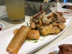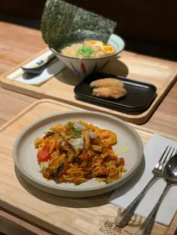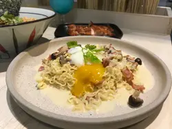 喺朗豪坊搭地鐵必定經過B2層嘅筷趣一町,次次經過都覺得好新奇好想試下,Happy Friday喺旺角見完客梗係順便食埋晚飯。平日嘅六點幾人流唔算多,餐廳座位寬落,空間感十足,半自助式嘅餐廳,點好菜坐埋位等食就得!menu主打即食麵!全部都係麵麵麵!Fusion樣樣都好吸引,最後決定食一個湯麵,一個炒麵!🍝意式卡邦尼即食麵配溫泉蛋🍝 $78 同事一向大愛卡邦尼意粉,所以必點意式卡邦尼即食麵!先講個醬汁非常creamy,奶香同芝士味均勻,香濃而不膩,配上溫泉蛋攪勻後多左蛋香成個麵更滑!配菜仲有勁多煙肉粒同菇粒,食落口感豐富。意粉變左即食麵,估唔到同樣的掛汁,加上即食麵麵質煙韌同香口,好驚喜!推介! 🍜沙嗲牛肉麵🍜 $70(自選一個配菜 +$12 煙豬肉火腿🍖)沙嗲牛肉麵係必點之選!加$12左右可自選類似常餐或車仔麵之類嘅配菜,我揀左比較少見嘅煙豬肉火腿🍖上枱是一刻以為點左一碗拉麵,因為加左一大片紫菜🤣沙嗲牛肉醬汁勁香濃帶點微辣,牛肉肉質軟嫩仲幾淋,配上煮得剛剛好嘅即食麵,爽口彈牙!煙豬肉火腿煎得香口薄脆,抵食又好味!🍤炸小食拼盤🍤 $78 炸小食拼盤有廣島生蠔、軟殼蟹、春卷同雞翼共4款。廣島生蠔炸粉剛好,唔油膩仲有D爆汁!其他炸物都唔錯,配埋特色泰式酸辣醬食更惹味。🍗美式香辣炸雞配帕馬森芝士及黑松露醬薯條🍗 $78炸雞炸至酥脆,雞肉夠juicy帶點微辣份量多,黑松露配上薯條好香口。🥞法式西多士配雜野莓 $68 外觀好靚嘅法式西多士外脆內軟,伴碟有雜莓酸酸甜甜,配埋香甜可口嘅楓糖一齊食更美味! 飲品: 🧃青檸薄荷梳打 $42 同 🍋蜜糖檸檬梳打,清新又唔算太甜~唔錯…查看更多
