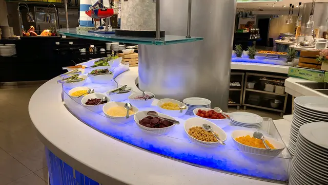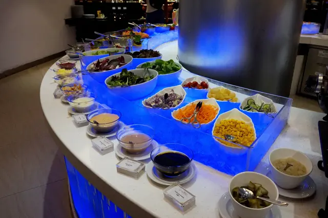 最近酒店有個優惠給機場員工,有朋友送兩張優惠券給我試食。全buffet 很齊全。沙律吧有各式新鮮沙律菜及其他配料,例如紅菜頭、菠蘿、粟米、椂柚粒(很清新)等等。另外仲有煙三文魚、薯仔沙律、磨菇等等。食物夠新鮮,選擇算多。有凍海鮮,例如蝦、青口、硯,仲有壽司區和芝士區。賣相不錯,新鮮。熱盤方面有一般選擇,例如蒸蛋、春卷、蒸魚、紅酒燴牛尾、咖哩類等等。因為太多人在熱盤區搵食,所以沒有認真過去那邊取食物。另外有肉車、海南雞飯、日式拉麵,因為是廚師派發,感覺比較良好。甜品有movenpick 雪糕、窩夫、各式蛋糕、芝麻糊、麵包布丁之類。廚師𢳂雪糕要排長龍是常識吧。長者比較喜歡芝麻糊夠地道,而雪糕一定是年青人的主打。由於剛巧遇到有幾個本地旅行團ssss,餐廳充滿人流,食物補充都算快,但真的要用‘’搶‘’來形容取食物過程。比較斯文者便要多加考慮。幸好餐廳方面將團體坐位跟散客分開,尚算貼心。用優惠券價錢來到機場食buffet是可以接受的,但如果用正價或只有少量折扣,就不了。…查看更多