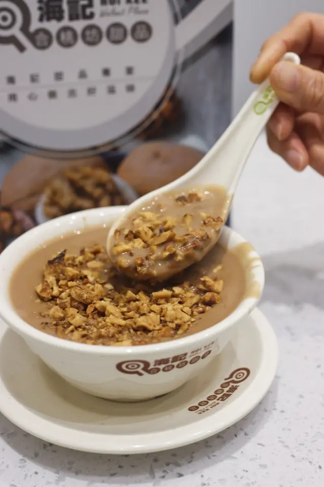 趁週末放假,就同朋友去食糖水做下午茶。由於朋友想食中式糖水,而我就想食芋圓,所以揀咗呢間有傳統加新式糖水嘅舖頭。舖頭店面都幾闊落同乾淨,而侍應姐姐雖然做到無停手,但服務態度都還可以。由於週末關係,再加埋通關,人客都唔少,好彩下午三點幾去到,都無需排隊。朋友叫咗招牌嘅沙沙合桃糊。合桃糊都幾滑,甜度亦適中;合桃粹份量都足,一個糖水有兩種口感,好抵食呢~我就叫咗紫薯香芋雪樂冰芋圓紫米露。見個名咁長,就知多料。味道方面,香芋雪糕味道比較濃,紫薯雪糕就奶味重;芋圓煙煙韌韌,但味道俾紫米露嘅椰汁味蓋過。但一碗糖水有齊紫薯雪糕、香芋雪糕、三色芋圓、紫米露,都係$39,性價比好高~…查看更多