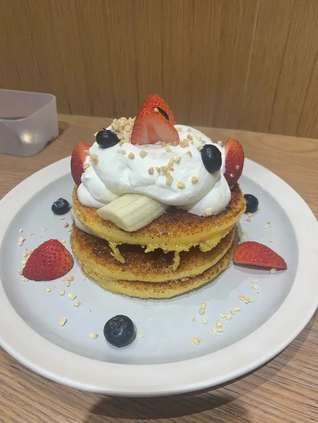 High quality pancakes with good savoury food 😍 Recommend you to try the creme brûlée pancake which is a less common flavour  among the pancake shops. The pancakes were fluffy and soft, with a crispy layer of caramel on top which enriched the mouthfeel. Sweetness was appropriate. It was also accompanied with fresh fruits, portion was big and delicious! For the savoury food, I recommend the sea urchin pasta. The sauce was creamy and the pasta was filling. The portion of sea urchin was also generous and fresh enough 🤤 if you prefer a more refreshing drink to go with the pancakes, I would suggest the lemonade which was a sparkling drink here.|Creme Brûlée Pancake法式焦糖班戟💰HKD129|Sea Urchin Pasta with Mentaiko Sauce明太子醬海膽意粉💰HKD198|Honey Orange Lemonade💰HKD32|Green Tea Latte (Cold)💰HKD39…查看更多