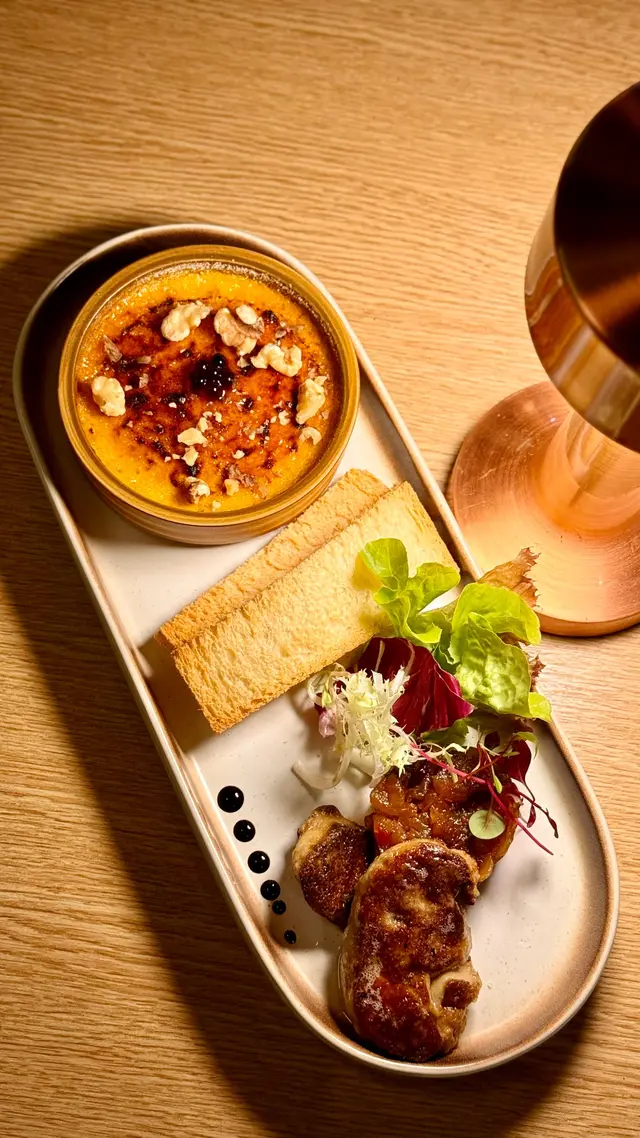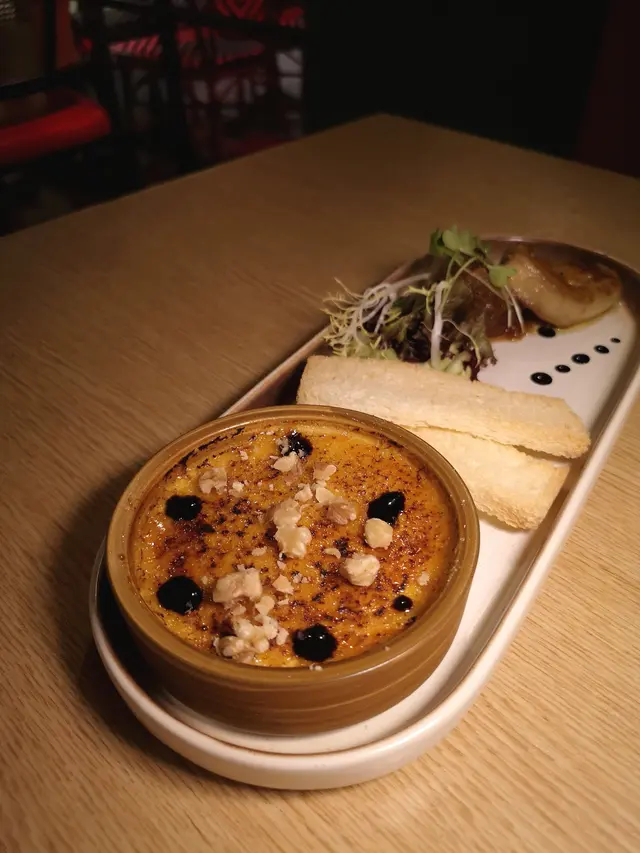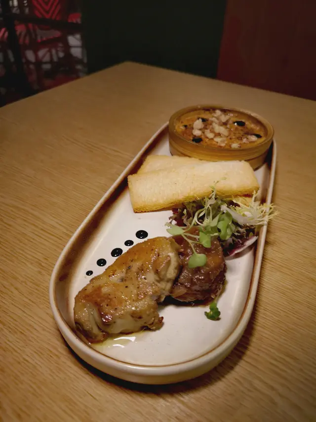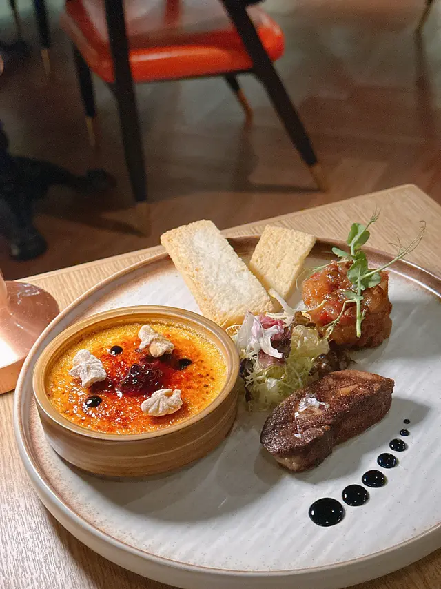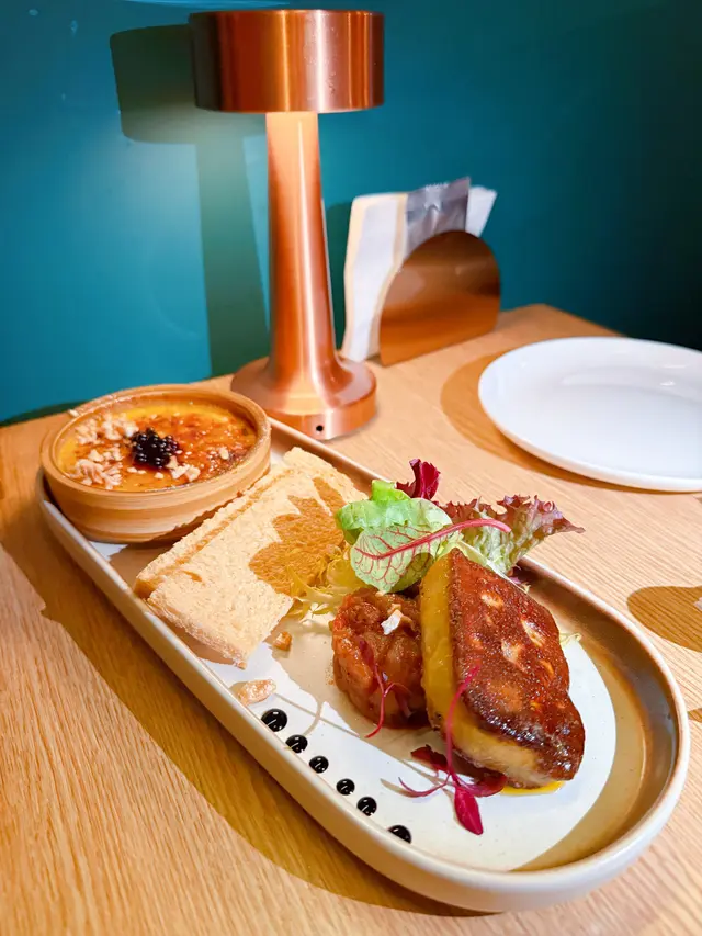 想有個二人世界,依間俾到你,餐館環境寧靜,燈光昏晚有情調,美食慢慢上枱,可以食得耐談心一流。味道都唔錯,部份有半價優惠就抵。煙三文魚凱撒沙律 $128沙律菜一大兜,配凱撒醬汁酸甜開胃,仲有煙三文魚塊,相當美味。芒果醬檸檬蒜泥蛋黃醬蟹餅 $168蟹餅兩件蟹肉足料,配醬汁口味清新,小食唔錯。法式鴨肝二重奏 $94是晚有半價優惠吸引,鴨肝兩食幾特別。鴨肝香煎焦香味美,配蘋果醬酸甜解膩。鴨肝焦糖燉蛋口感綿滑配多士好味。龍蝦忌廉汁虎蝦扁意粉 $208虎蝦兩隻爽口彈牙,扁意粉彈牙掛汁,龍蝦忌廉汁加持下鮮味可口。…查看更多