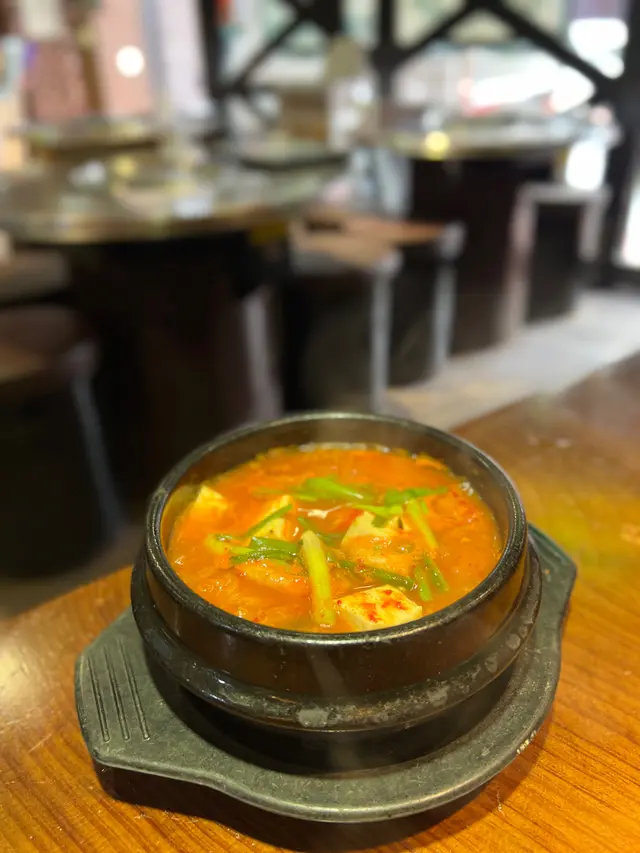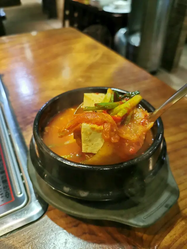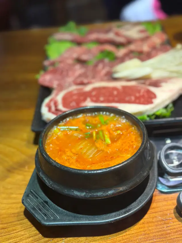 星期五晚和加拿大回來的朋友到尖沙咀南대門吃韓燒。有多款前菜,而且可以吃完再添加,欣賞前菜有多款蔬菜,可以補充纖維。豬肉拼盤Set A有五花肉、護心肉、豬頸肉、醬醃薄切五花腩,附送一籃生菜包着吃,另外可以選擇泡菜湯或大醬湯。侍應會幫忙燒肉,還會切小件,生菜包着豬肉吃,可以減輕油膩感。泡菜湯很辣,裏面有豆腐和大量泡菜。韓式牛肋骨湯牛肋骨煮得非常軟腍,而且大大件,附送一碗白飯,淋上牛肋骨湯變成湯飯吃很美味。紫菜包飯 簡簡單單的紫菜包飯就已經非常好吃。…查看更多