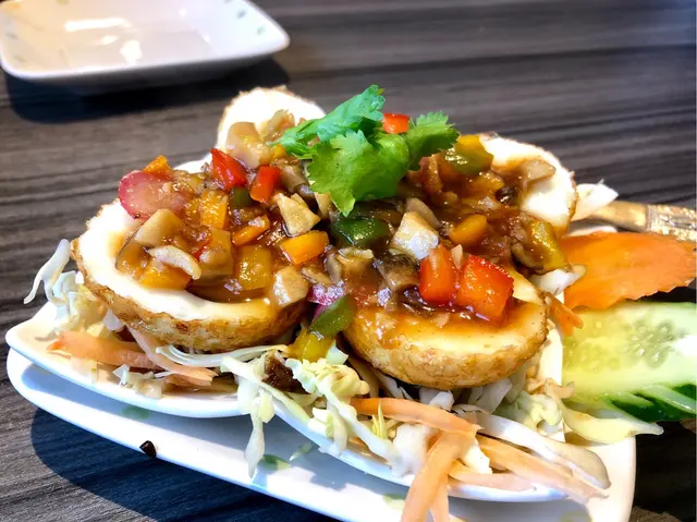 尖沙咀特色泰國素食😍呢間餐廳同左Green Monday 合作🤗多左選擇實在太高興了新豬肉生菜包🥗太辣了😂立即要泰式奶茶🍹解下辣杯奶茶又幾好飲👍大家可以試試有個素雞米紙捲包🌯 米紙要先係溫水浸下先可以包料 感覺好新鮮😂跟住係不得了的🍳泰式女婿蛋 切開兩邊的蛋攞去炸個醬超級正一定要試🤤泰式素雞炒金邊粉 小小咸新豬肉碎菠蘿炒飯👍好食 薯片係重點😂泰式素雞粉絲沙律🥙價錢小貴 但野食都幾好食 值得一試👍=================皇后泰國廚房地址: 尖沙咀廣東道116-120號海威商業中心16樓電話: 29920111=================…查看更多