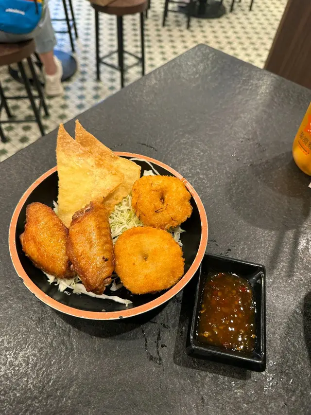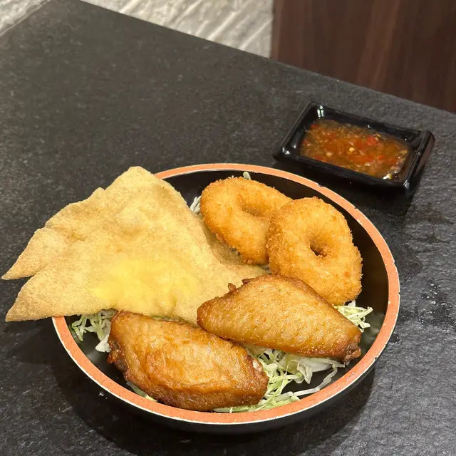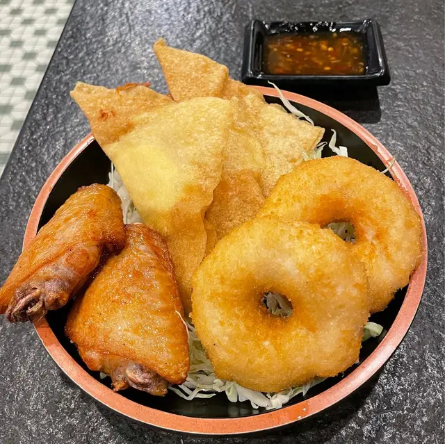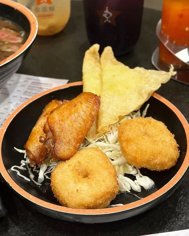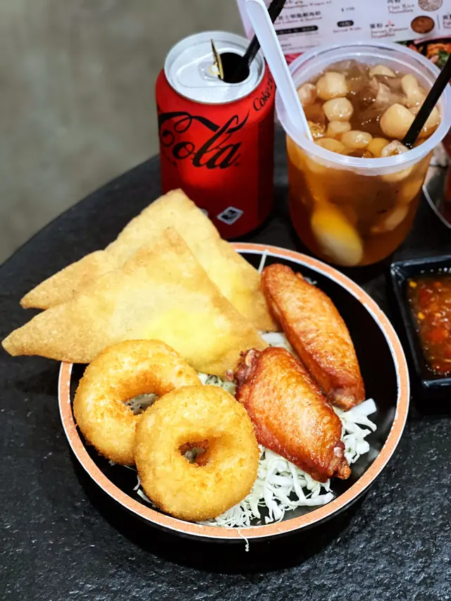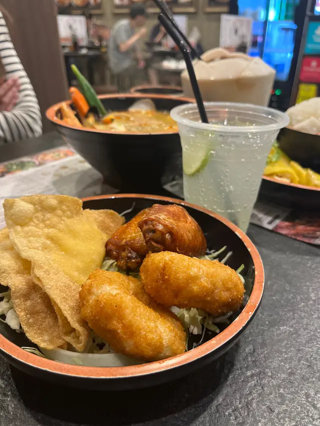 窩夫與蝦子餅星期日去完iSQUARE地下的阿仙奴快閃店,在附近找地方吃晚飯。下午6時左右見「泰濃麵」不用等位便進去。除了泰國船麵,還有海南雞和其他小食。飲品方面,蝦子餅點了泰式青檸梳打特飲($29),窩夫則點了泰式龍眼冰特飲($29),龍眼冰消暑一流,龍眼肉非常多。7吋虎蝦船湯薯粉($128)的湯底濃郁,薯粉份量足,配料有魚蛋、炸豬皮、蘿蔔、芽菜和秋葵,蘿蔔入味又夠腍。主角虎蝦大大隻,十分爽口。廣島蠔冬陰功湯黃麵($99)有五隻廣島蠔之多,配料有蝦、蟹柳、青口仔、菇和秋葵,十分豐富,冬陰功湯酸辣適中。泰式小食拼盤($78)有蝦餅、雞翼和炸芝士雲吞,三款小食各兩件,二人分享剛剛好。…查看更多